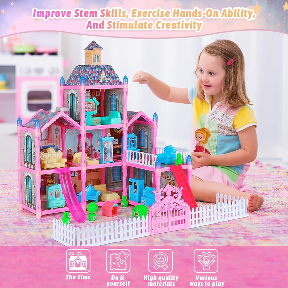 【سهلة التجميع】ألعاب بيوت الدمى الأميرة مع تعليمات التجميع الإنجليزية مع خطوات وصور مفصلة لسهولة التجميع. يمكن للآباء مرافقة أطفالهم لبناء بيت الدمى للفتيات، وتحسين قدرة أطفالهم على العمل العملي، وتحفيز الإبداع. دع حلم طفلك يتحقق، بيت الدمى بقلعة الأميرة هو عالم رائع، وبيت الأميرة النابض بالحياة يسمح للأطفال بعيش حياة خيالية مثل الأميرة.