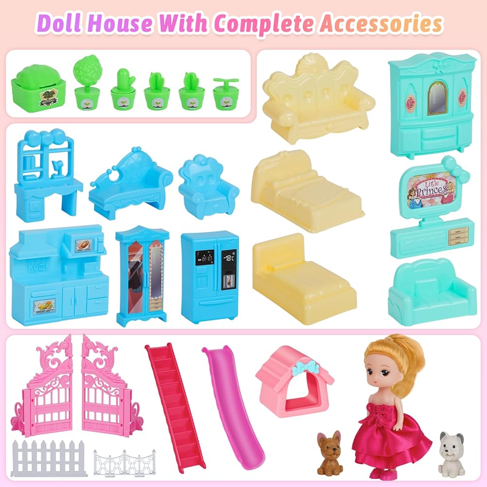 【بيوت الدمى أميرة الأحلام】 يبلغ مقاس بيوت الدمى 21.6 × 19.5 بوصة، مع 3 طوابق و8 غرف، كل منها لها موضوع مختلف: غرفة النوم، وغرفة المعيشة، والمطبخ، وغرفة الطعام، وغرفة الدراسة، وغرفة الألعاب، والفناء، وكلبين، و1 لطيف. لعبة. تحت إشعاع الضوء، المشاركات الزرقاء في الظلام عندما يكون الضوء. وهي مجهزة أيضًا بالعديد من الأثاث والإكسسوارات ذات الألوان العشوائية، والتي يمكن نقلها وترتيبها حسب الرغبة.