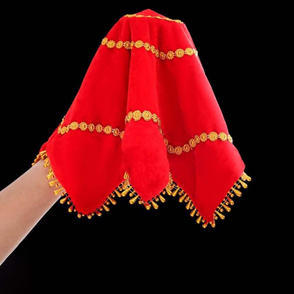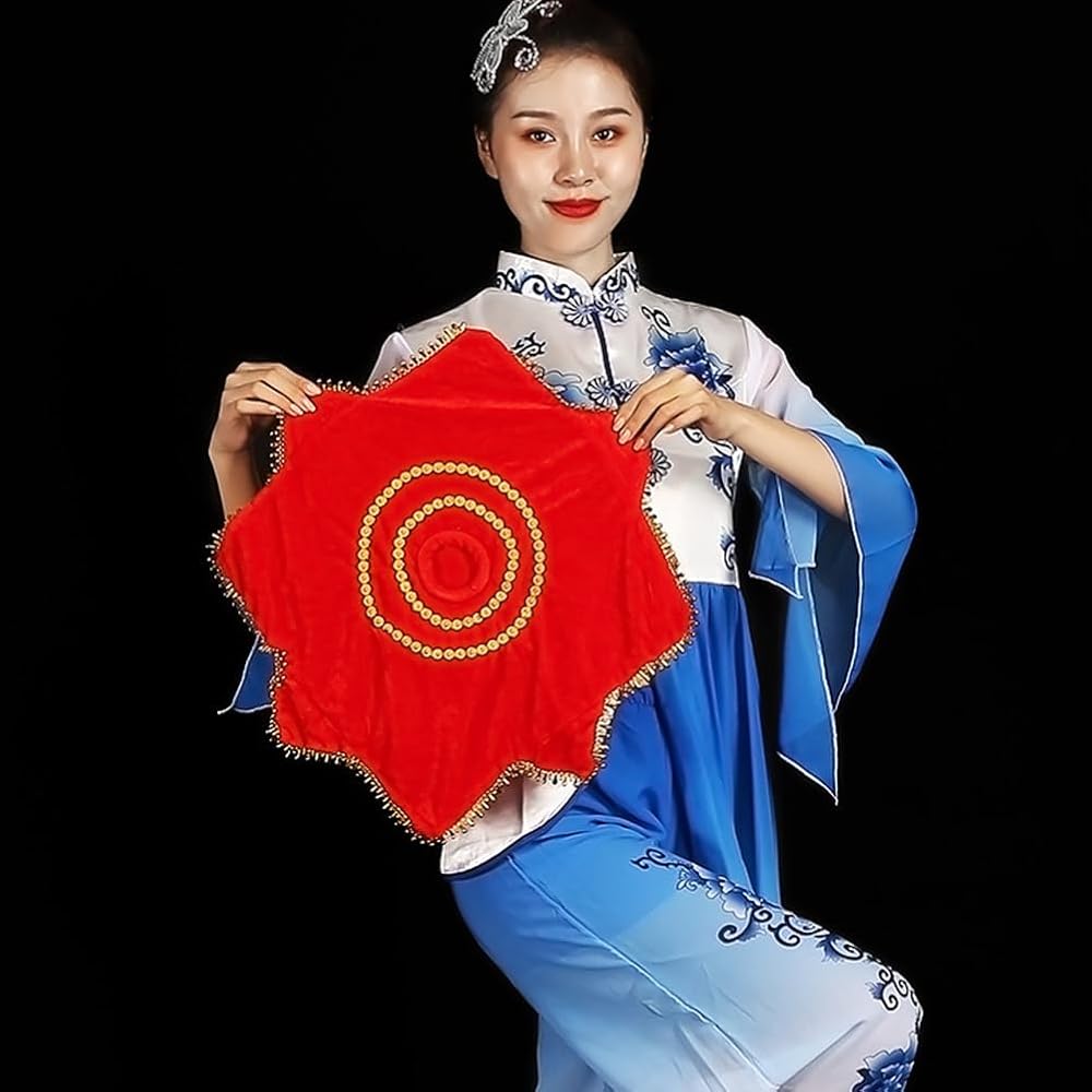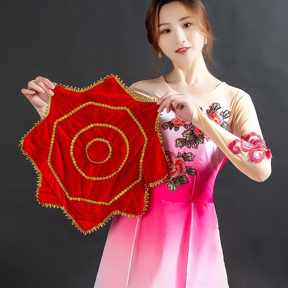 - منديل رقص أحمر-- مع الحلقة الداخلية في المنتصف، ليس من السهل أن يسقط عند الدوران، ومزين بالقطرات، ورقيق وجميل.