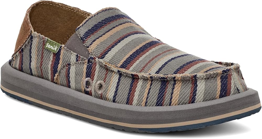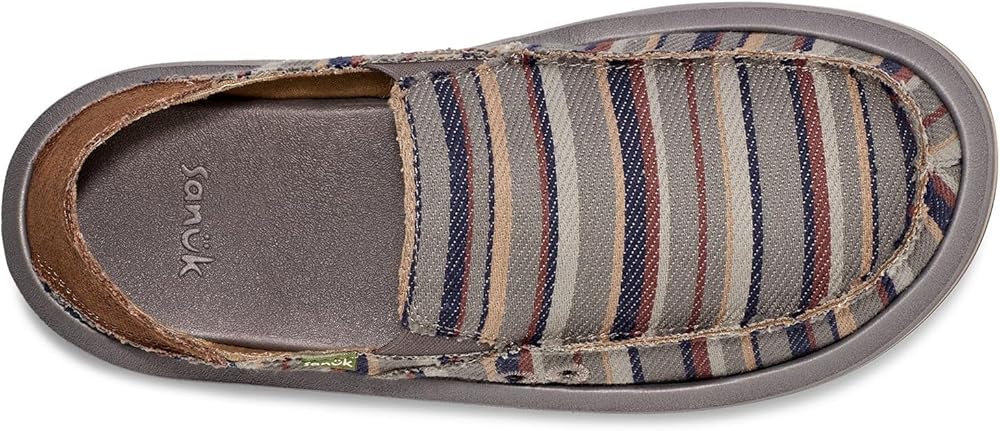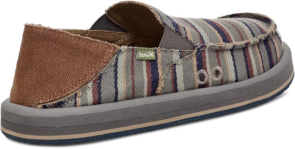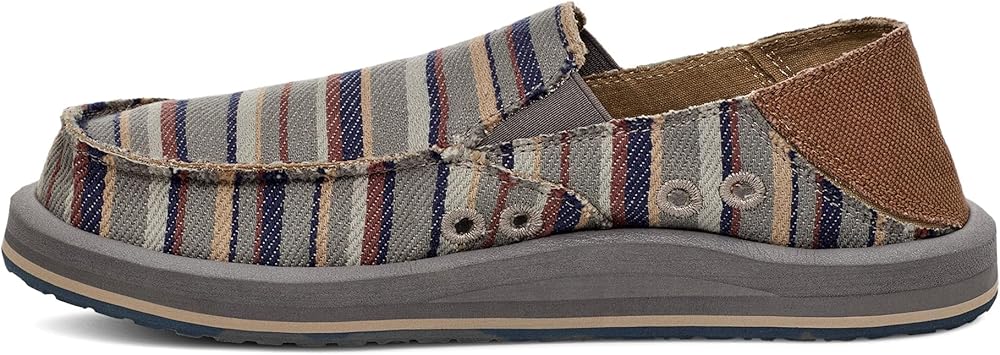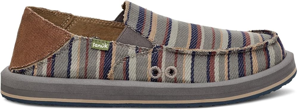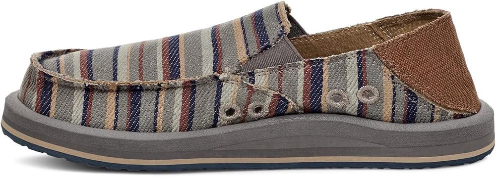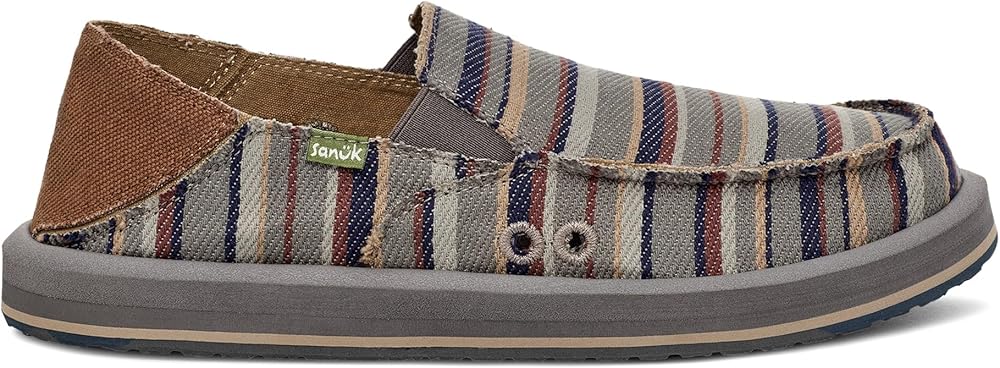 Add sophistication to your look and experience unmatchable comfort wearing Sanuk Donny Blanket Loafers. The slip-on style loafers come with a custom woven cotton blanket upper with traditional raised moc toe seam, elastic gore, and kick down heel counter for easy on/off. Responsibly sourced cotton lining. Contoured high rebound soft top footbed. Happy U tread sponge rubber outsole made with recycled material.