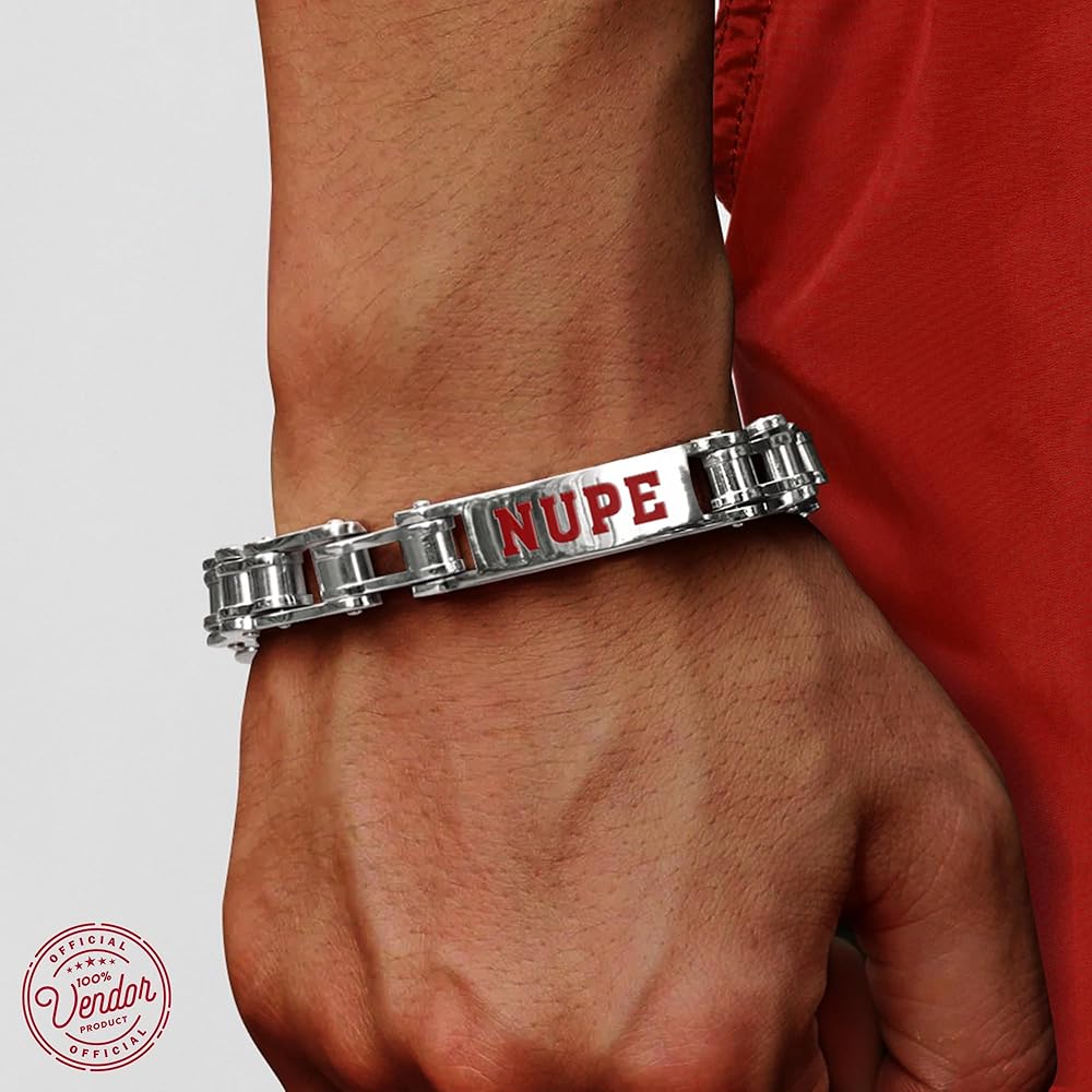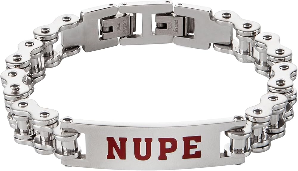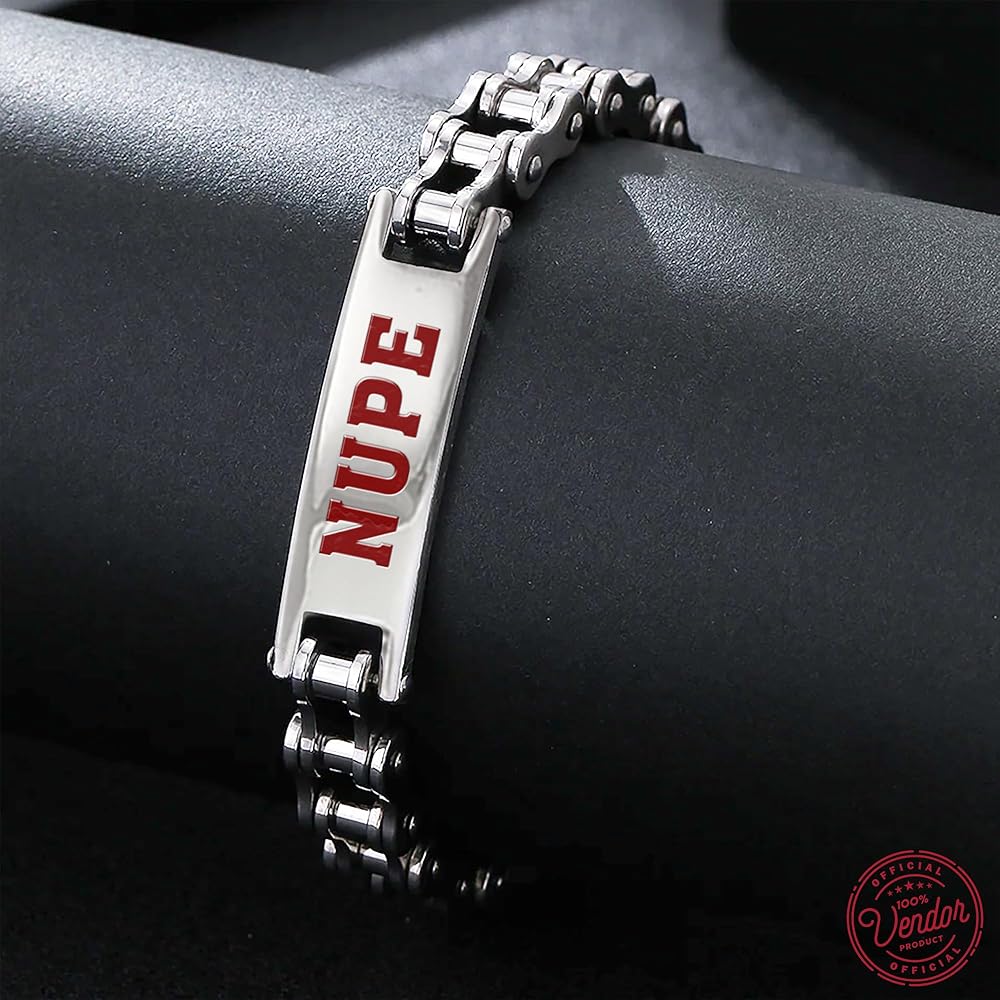 HIGH-QUALITY CRAFTSMANSHIP: Made from non-allergenic stainless steel with an anti-tarnish silver coating, this bracelet is safe for the skin and durable. It features an engraved NUPE and a recessed logo on the back.