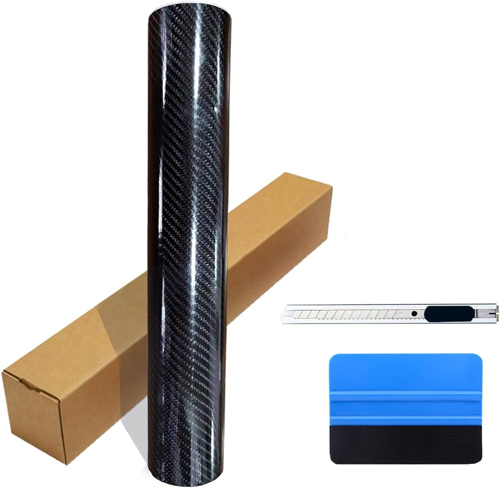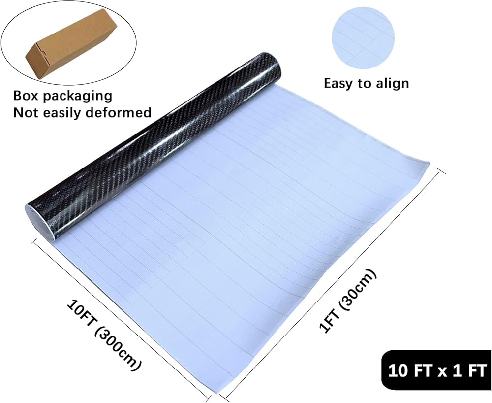 غلاف من الفينيل من ألياف الكربون بطول 10 أقدام × 1 قدم مع مجموعة أدوات مكونة من قطعتين، غلاف من الفينيل الأسود خالٍ من الفقاعات مع تقنية إطلاق الهواء، مثالي للحماية الداخلية الخارجية للسيارة (ألياف الكربون السوداء)