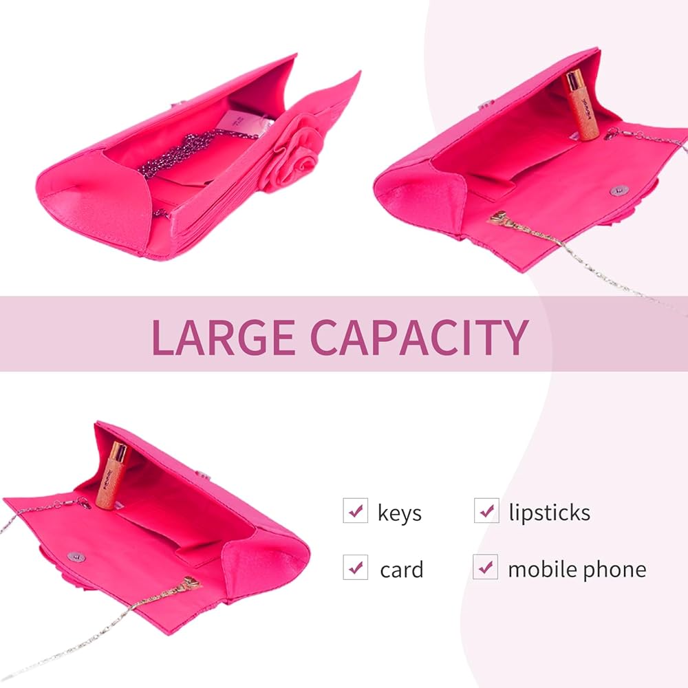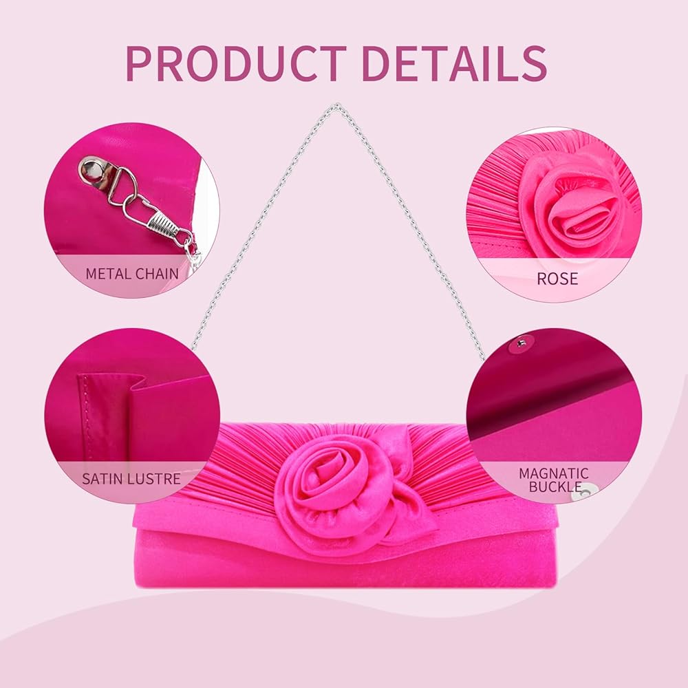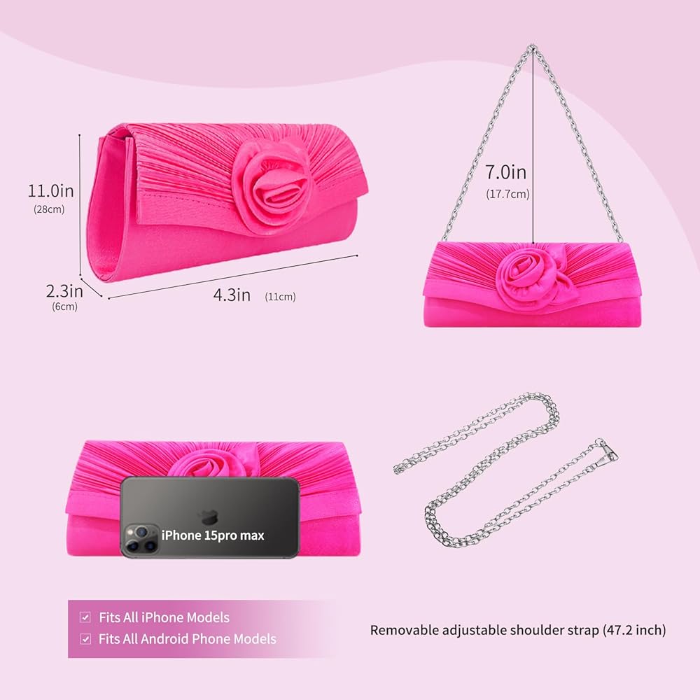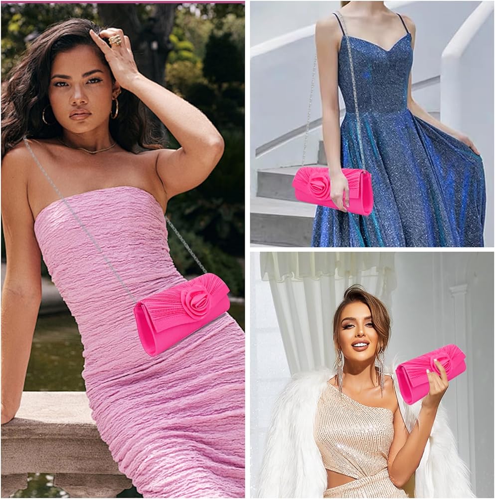 Luxurious Design : Featuring a chic pleated style and a stunning rose accent, this evening clutch exudes sophistication and femininity.