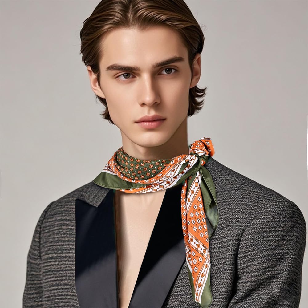 Satin silk scarfs can be used as head scarf, hair scarf, neck scarf, handkerchief, neck tie, neckerchief, bandana, head wrap, headscarf, head tie band, headbelt, handbag scarf, flight attendant scarf, hand band, wrist band, waist band, etc.