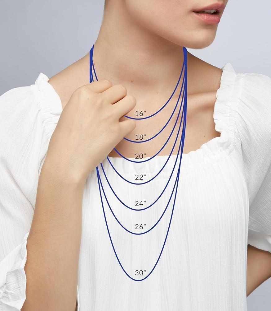 - يبلغ طول القلادة 45.72 سم، بالإضافة إلى وصلة تمديد 5.08 سم لطول قابل للتعديل