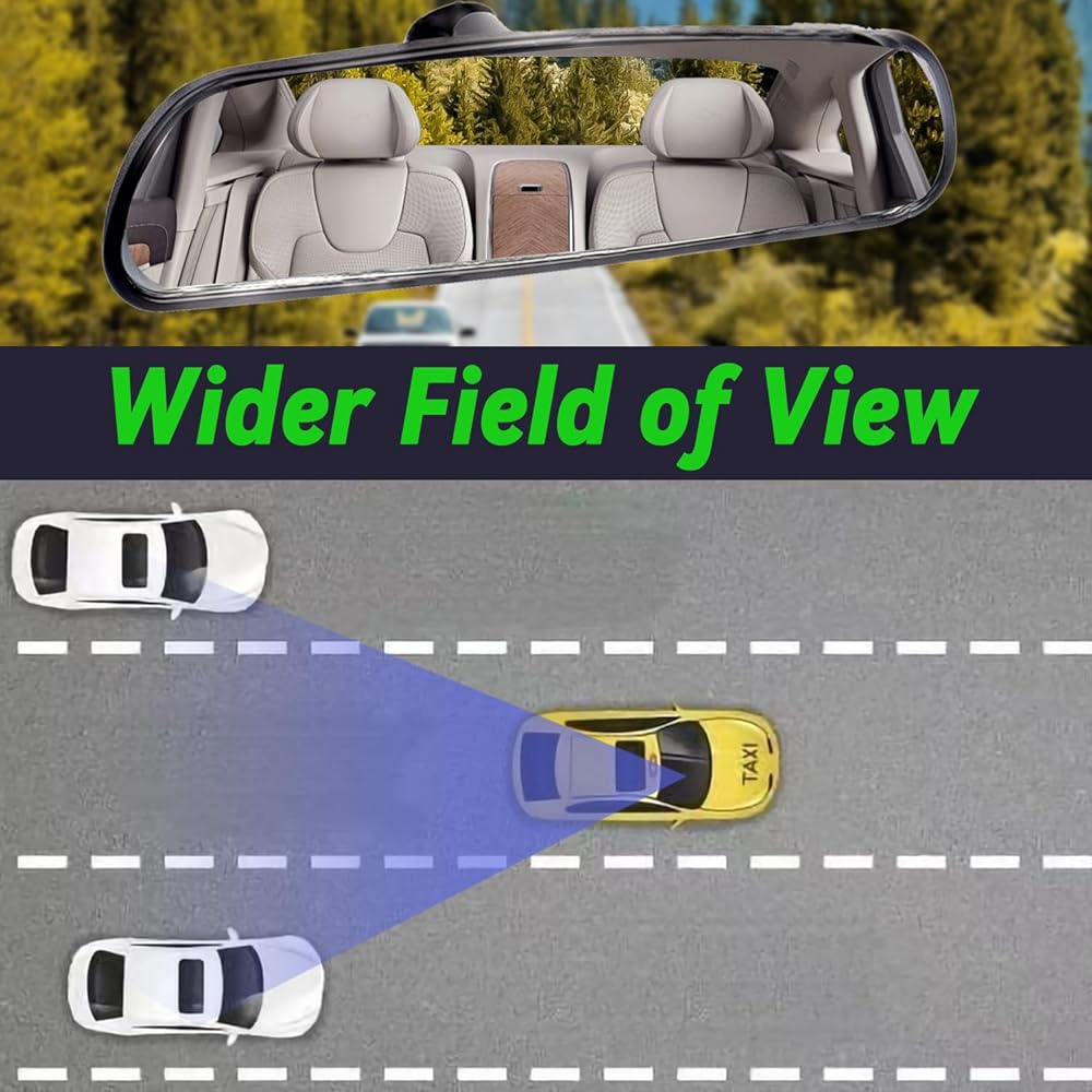 رؤية أوسع: توفر المرآة الداخلية رؤية خلفية واسعة وواضحة، مما يسمح برؤية سريعة للمركبات خلفها. يمكنك التكيف مع المنظور المثالي في أي وقت، وهو مناسب لتغيير الممرات أو العكس، وتحسين سلامة القيادة