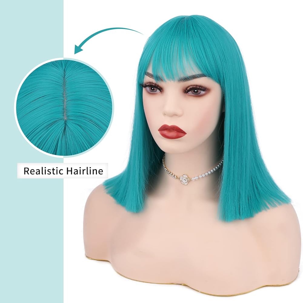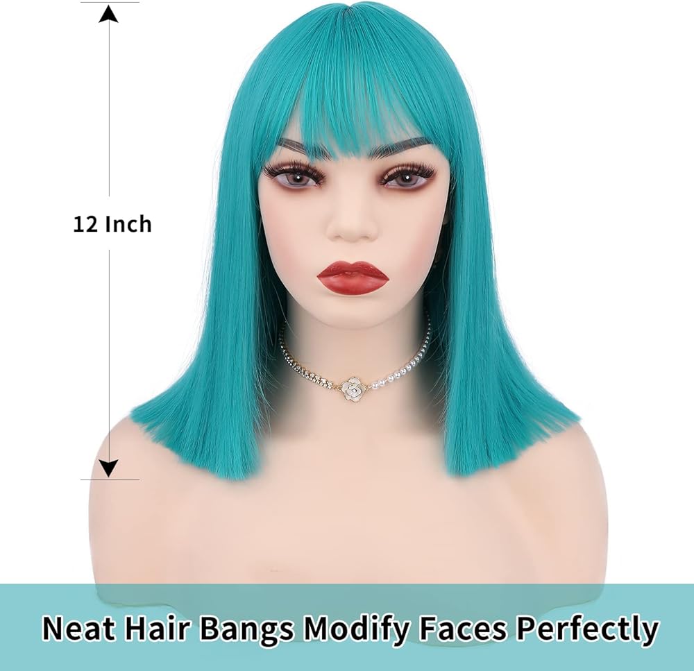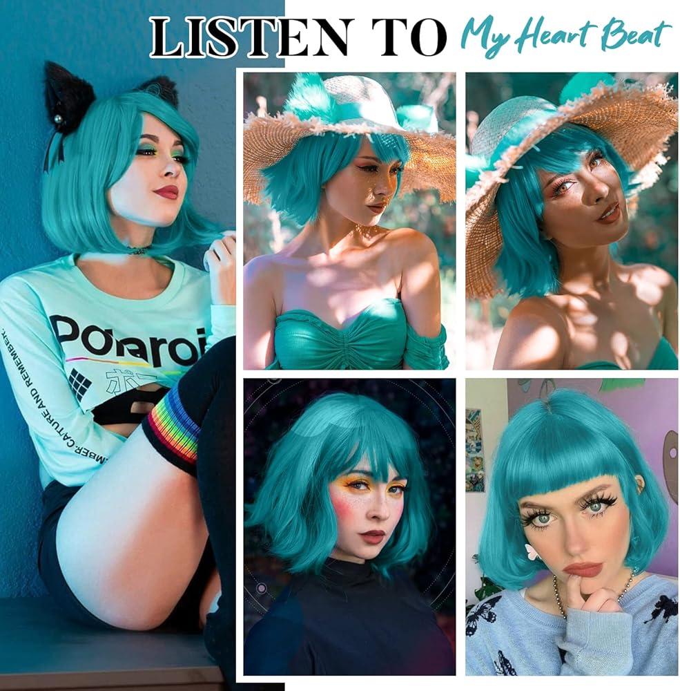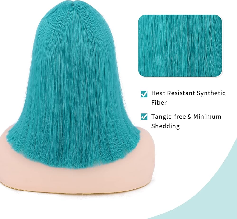 • 【لون جميل】شعر مستعار قصير باللون الأزرق المخضر، حب الفتيات للقلب. مثالية لزي بولما أو الأزياء التنكرية الأخرى.