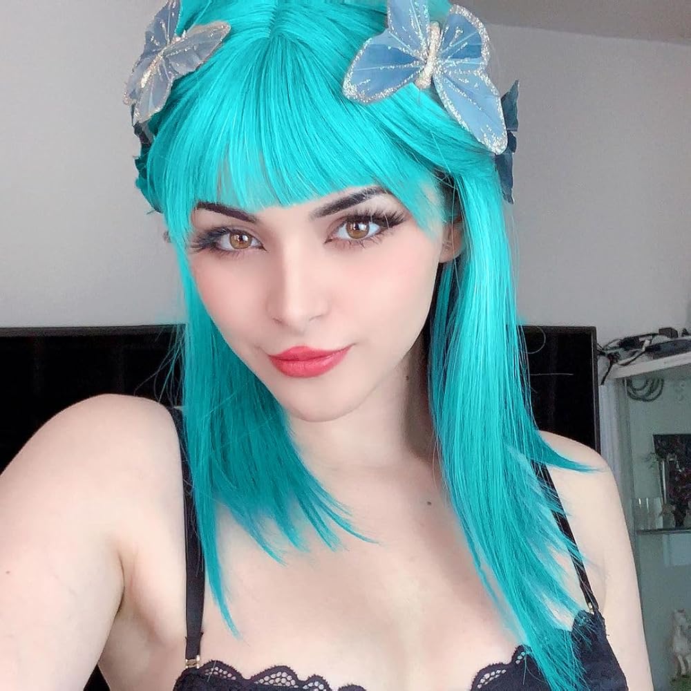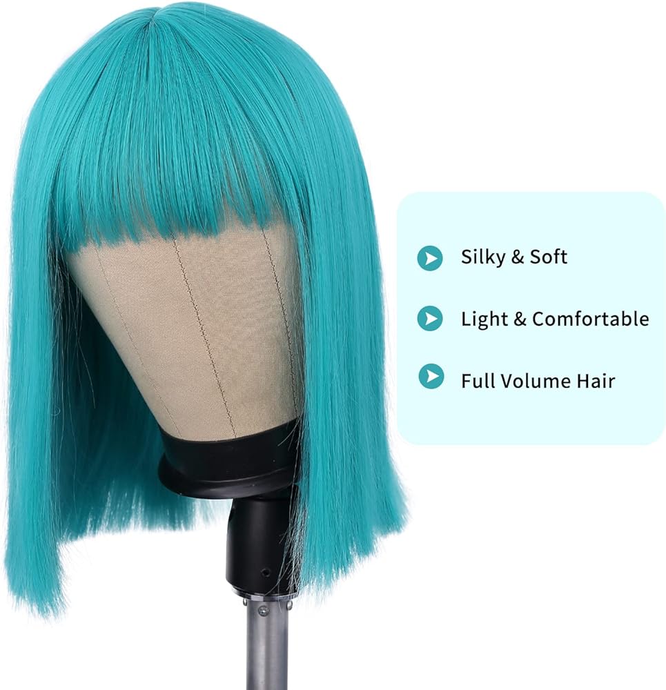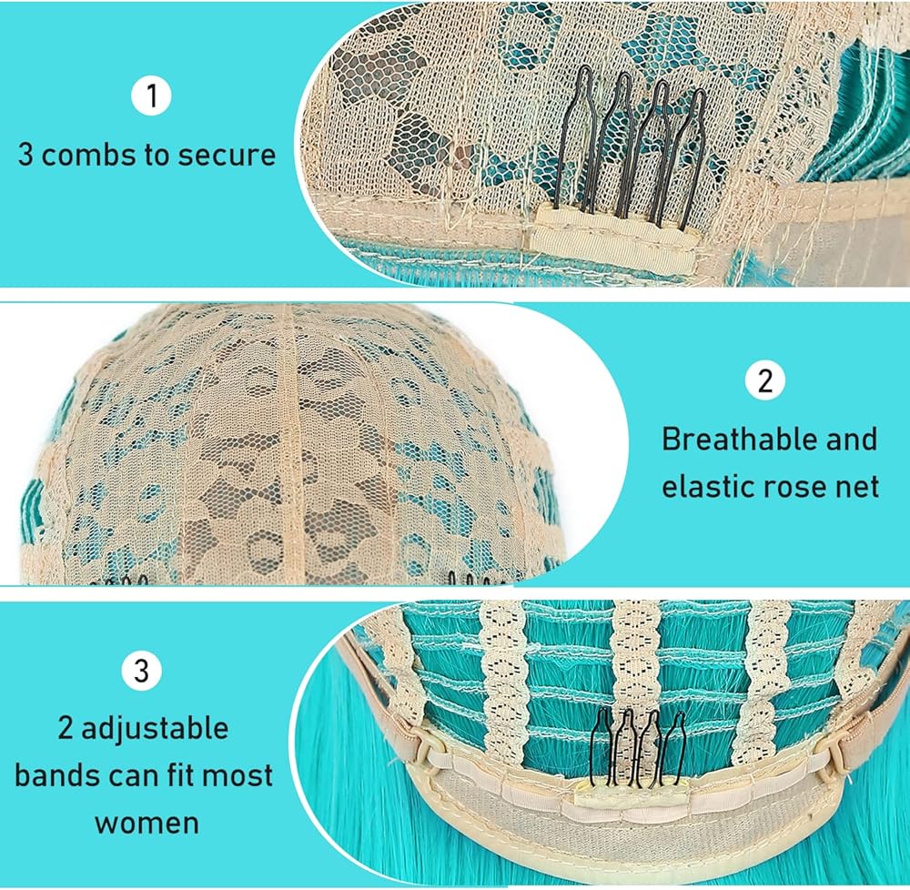 • 【لون جميل】شعر مستعار قصير باللون الأزرق المخضر، حب الفتيات للقلب. مثالية لزي بولما أو الأزياء التنكرية الأخرى.