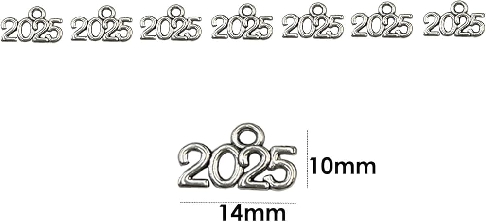 مجموعة أدوات صنع المجوهرات الساحرة لعام 2025 مصنوعة من سبيكة صغيرة مكونة من 2025 حرف خرز لهدايا ليلة رأس السنة الجديدة صناعة المجوهرات شرابة التخرج DIY، 100 قطعة (فضي)