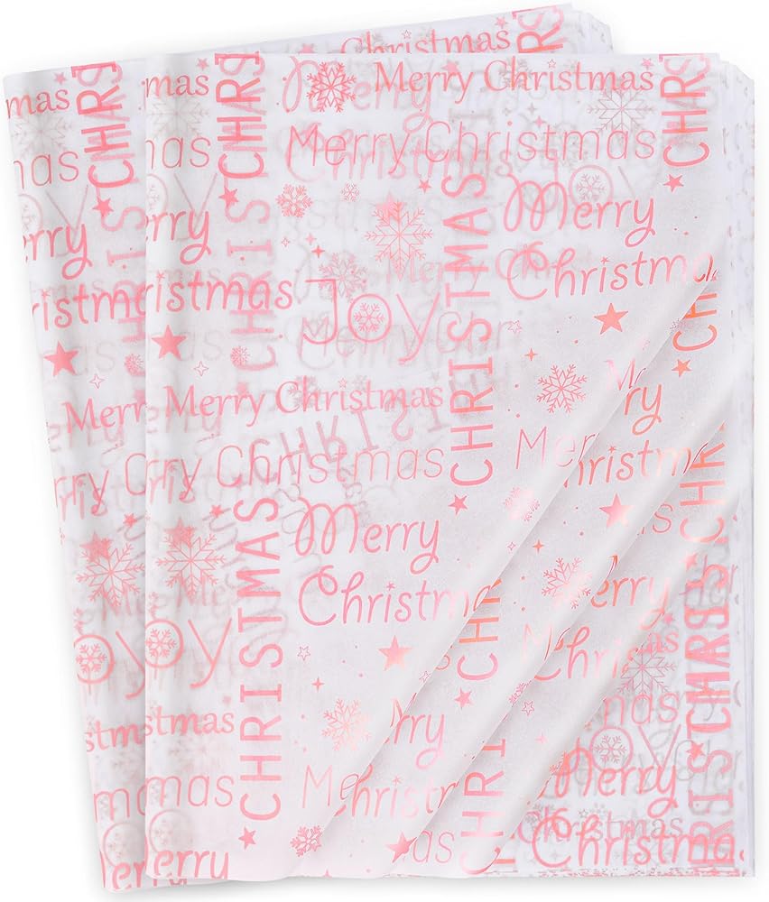 السيد خمسة 60 ورقة بيضاء مع سمك السلمون الوردي عيد ميلاد سعيد المناديل الورقية السائبة، 20 "× 14"، الوردي المناديل الورقية لأكياس الهدايا، عيد ميلاد سعيد المناديل الورقية لحفلة عيد الميلاد