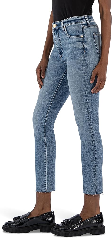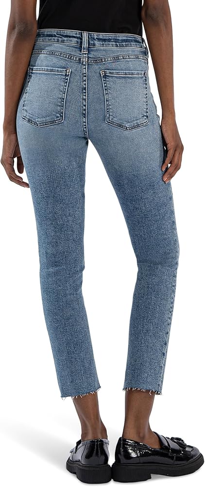 Elevate your denim game choosing the KUT from the Kloth Reese High Rise Fab Ab Ankle Straight Raw Hem jeans. Featuring a high-rise waist and straight-leg style, these jeans offer a flattering silhouette that's both on-trend and timeless. Plus, the be