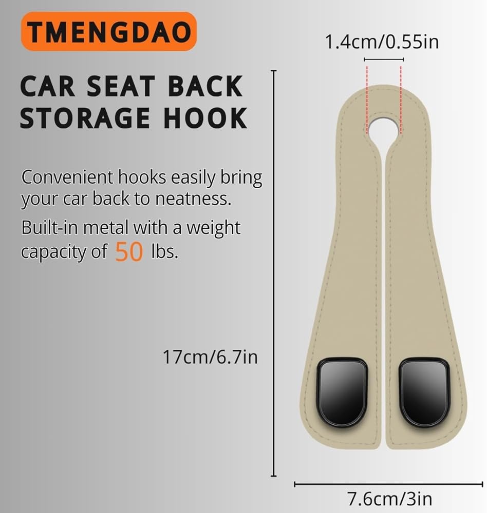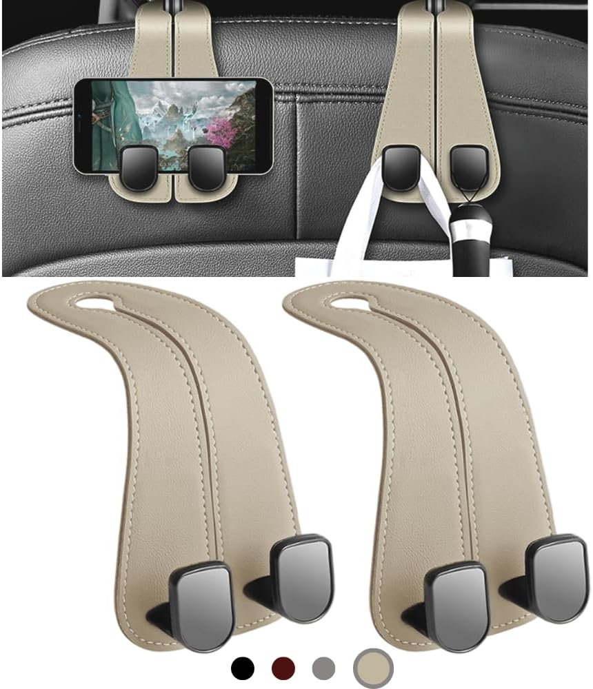 مواد عالية الجودة: خطافات تخزين مقعد السيارة هذه مصنوعة من جلد عالي الجودة، مما يجعلها متينة للغاية ومقاومة للتآكل. توفر الخطافات المعدنية المزدوجة سعة وزن أكبر، مما يسمح لك بتخزين المزيد من العناصر. تضمن الصنعة الدقيقة سطحًا أملسًا لن يتلف متعلقاتك، كما أن المظهر الأنيق يجعلها الخيار الأفضل لسيارتك