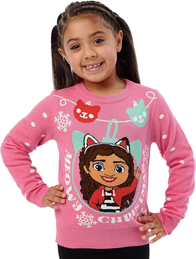 Dazzling in All Festive Occasions: Dazzle in every Christmas snapshot with our girls Christmas sweater, creating joyous memories that will be cherished for years to come. This Gabbys Dollhouse sweater effortlessly transitions from a playful day of unwrapping gifts to a cozy evening beside the twinkling tree, providing versatile wear that's perfect for all your holiday happenings.
