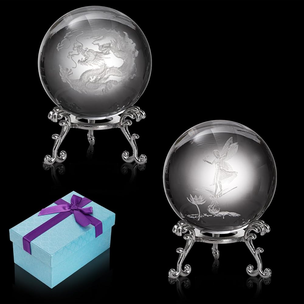 كرة بلورية ساحرة: هذه الكرات الزجاجية الشفافة منحوتة بشكل واضح وجذابة بصريًا بأنماط تشبه الحياة. يمكنك حملها في يدك والاستمتاع بتجربة ممتعة.