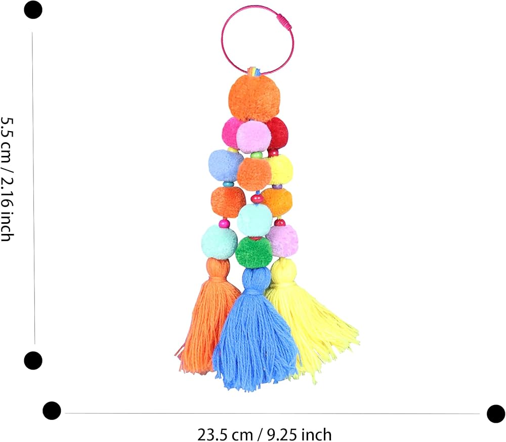 Upgrade your beach look with our trendy and practical Pom Poms and Tassel Charm accessory, guaranteed to add effortless style to your outfit. Made from high-quality polyester and metal, this accessory features a vibrant multicolor design that will undoubtedly stand out. With a lightweight construction of only 0.63oz (18g) and a total length of approximately 8.8 inches (22.5cm), it is a versatile addition to your beach ensemble. Whether you use it as a keychain or a purse charm, this accessory will be perfect for summer vacations or beach days. Get your hands on our Pom Poms and Tassel Charm today and level up your fashion game! The product package includes one Pom Poms and Tassel Charm.