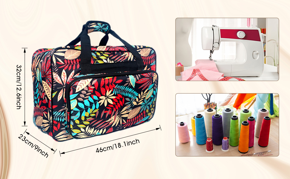 سعة كبيرة - تم تصميم الجيب الرئيسي الواسع لوضع ماكينة الخياطة الخاصة بك، في حين أن الجيب الصغير والجزء الأمامي فسيحان بما يكفي لحمل ملحقات الخياطة الأخرى، مثل المقص والمداس والإبر والبكرات وما إلى ذلك.