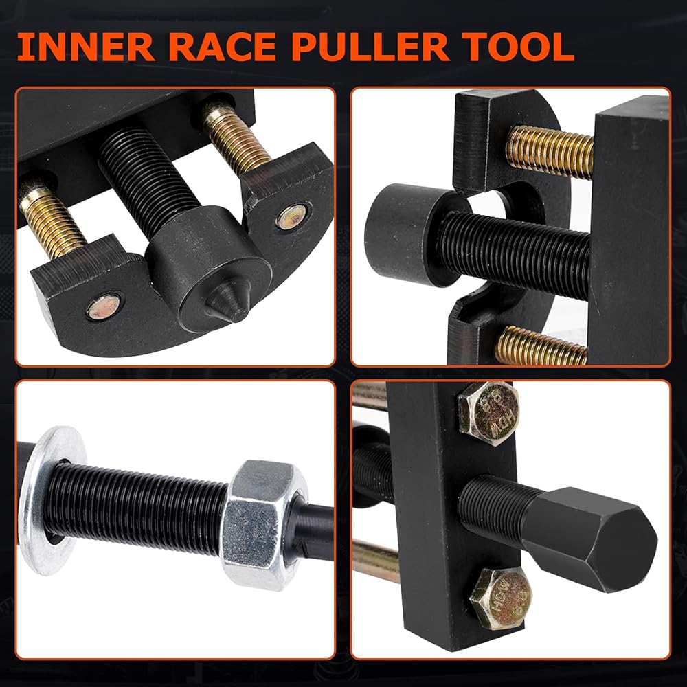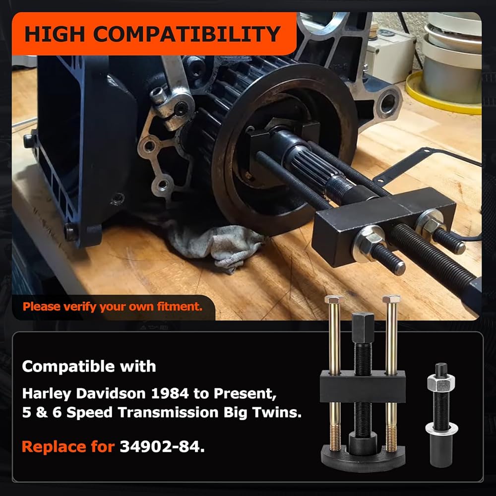 34902-84 مجموعة أدوات سحب ومثبت المحمل الداخلي لعمود ناقل الحركة الرئيسي متوافقة مع Harley Davidson Big Twin 1984 حتى الوقت الحاضر، 5 و6 سرعات، مجموعة أدوات إزالة السباق الداخلي
