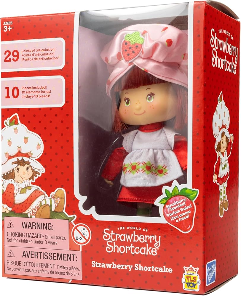 Introducing the charming 5.5-inch retro Strawberry Shortcake doll, a delightful homage to the original Strawberry Shortcake doll from the 80's. This updated classic is the perfect addition to any toy, fashion doll, and doll collection! This fully articulated doll (29 points of articulation!) is designed with high-quality materials and precise attention to every detail, making it both durable and beautiful. Get ready for a sweet-smelling playtime adventure with the 5.5-inch articulated Strawberry Shortcake fashion doll, each including (BIG VALUE and Reveals!) "secret/blind" accessories. With plenty of hair play, fashion play, and imaginative doll play, the Strawberry Shortcake fashion dolls are sure to bring joy, positivity, and love for ALL!