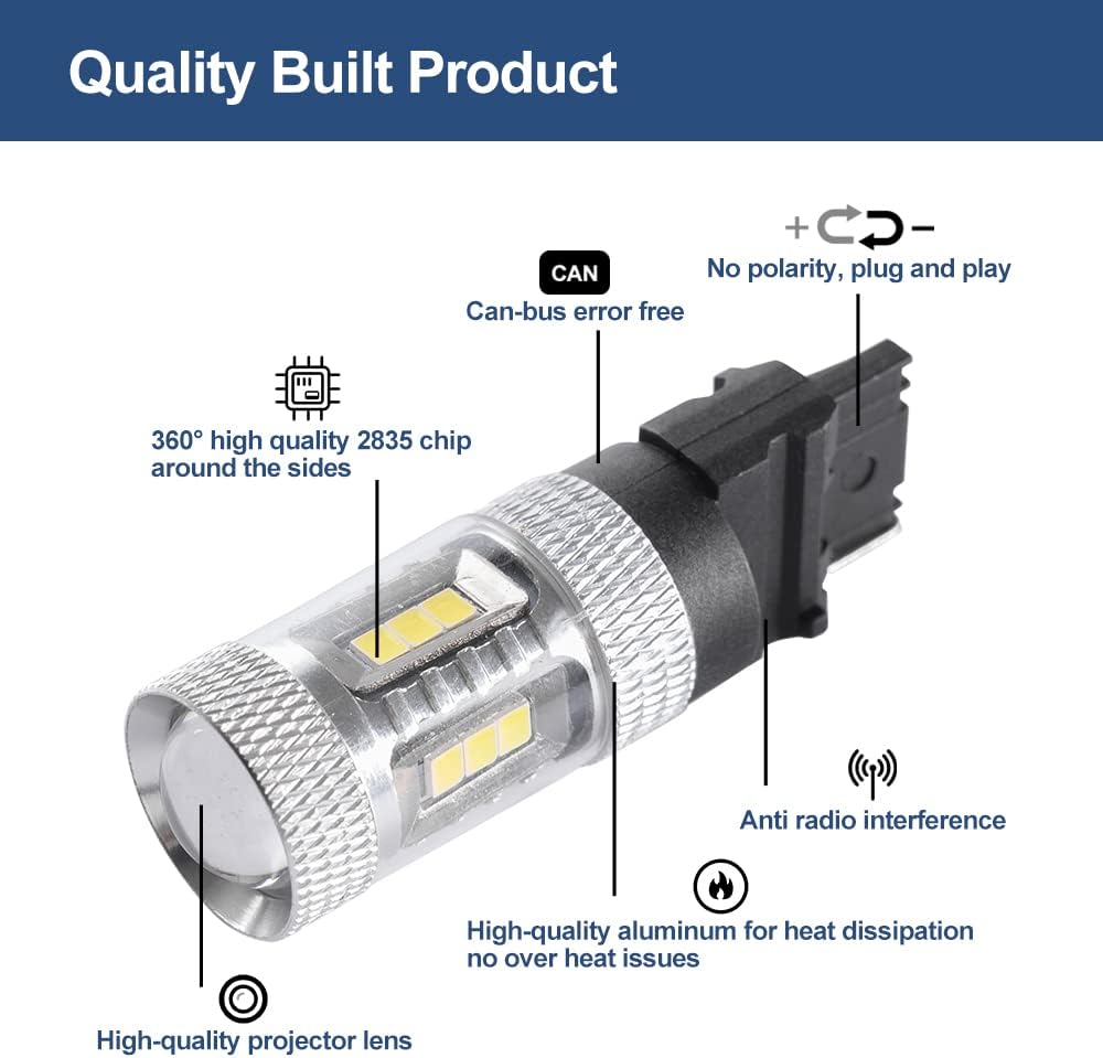 خالي من الأخطاء في CANBUS: يستخدم للمصباح العكسي Maverick، يمنع Canbus المدمج رموز الخطأ والوميض في معظم المركبات. ألومنيوم عالي الجودة لتبديد الحرارة، لا يوجد مشاكل في الحرارة الزائدة وعمر افتراضي أطول.