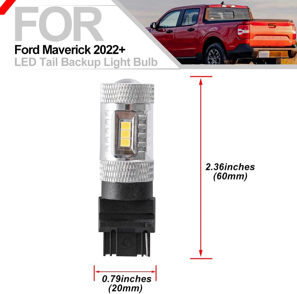 الطرز القابلة للتطبيق: مصابيح الإضاءة الاحتياطية العكسية WT21W Led المتوافقة مع 2021+ Ford Bronco، 2022 Maverick، 2021+ For'd F'150،2020+ For'd F-250 F-350 F-450 F-550 Super Duty الضوء العكسي . غير متوافق مع الموديلات التي تحتوي بالفعل على مصابيح خلفية LED