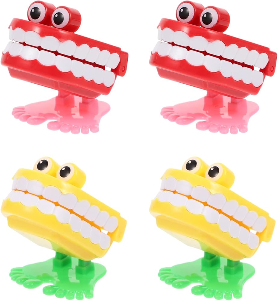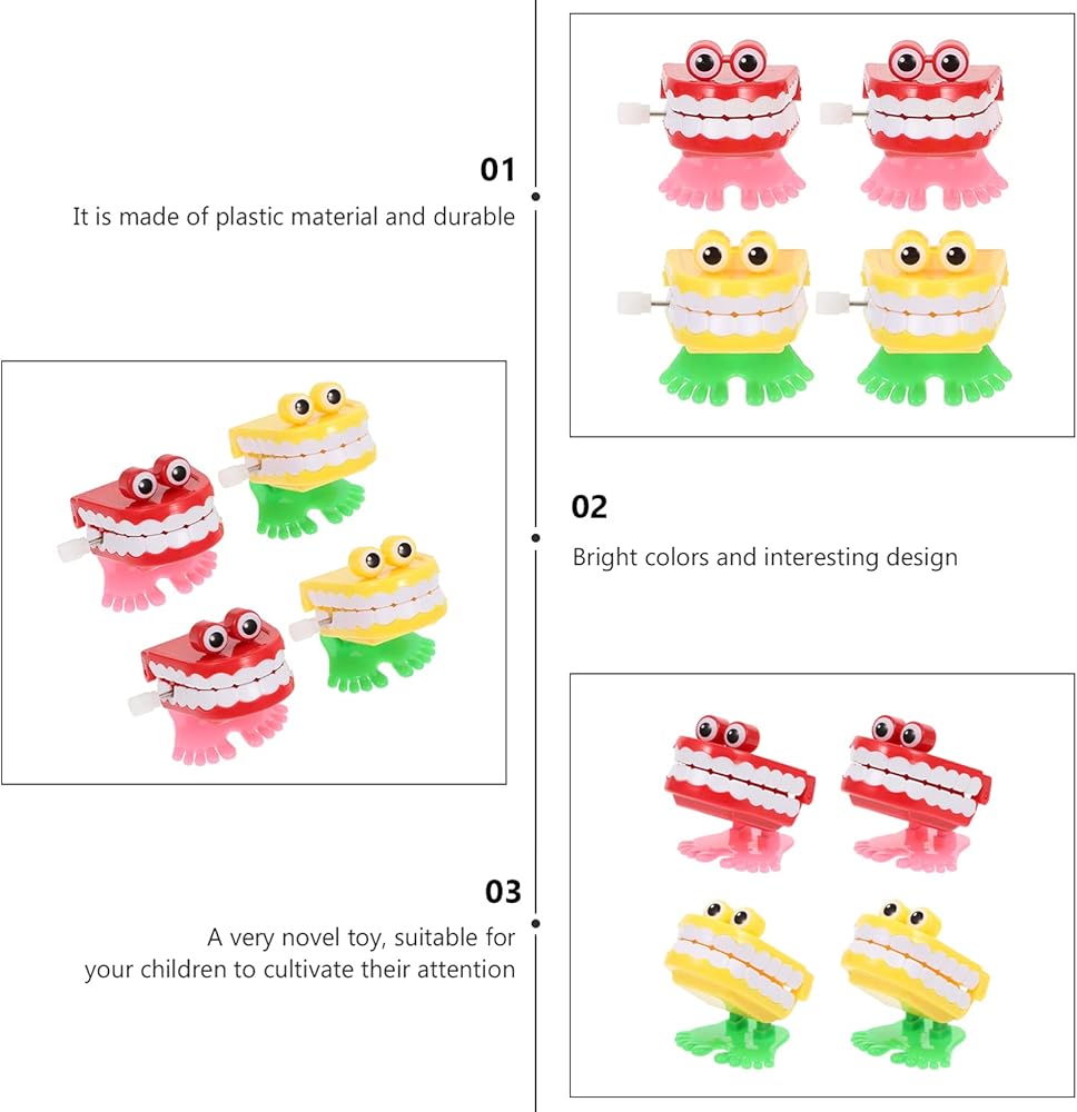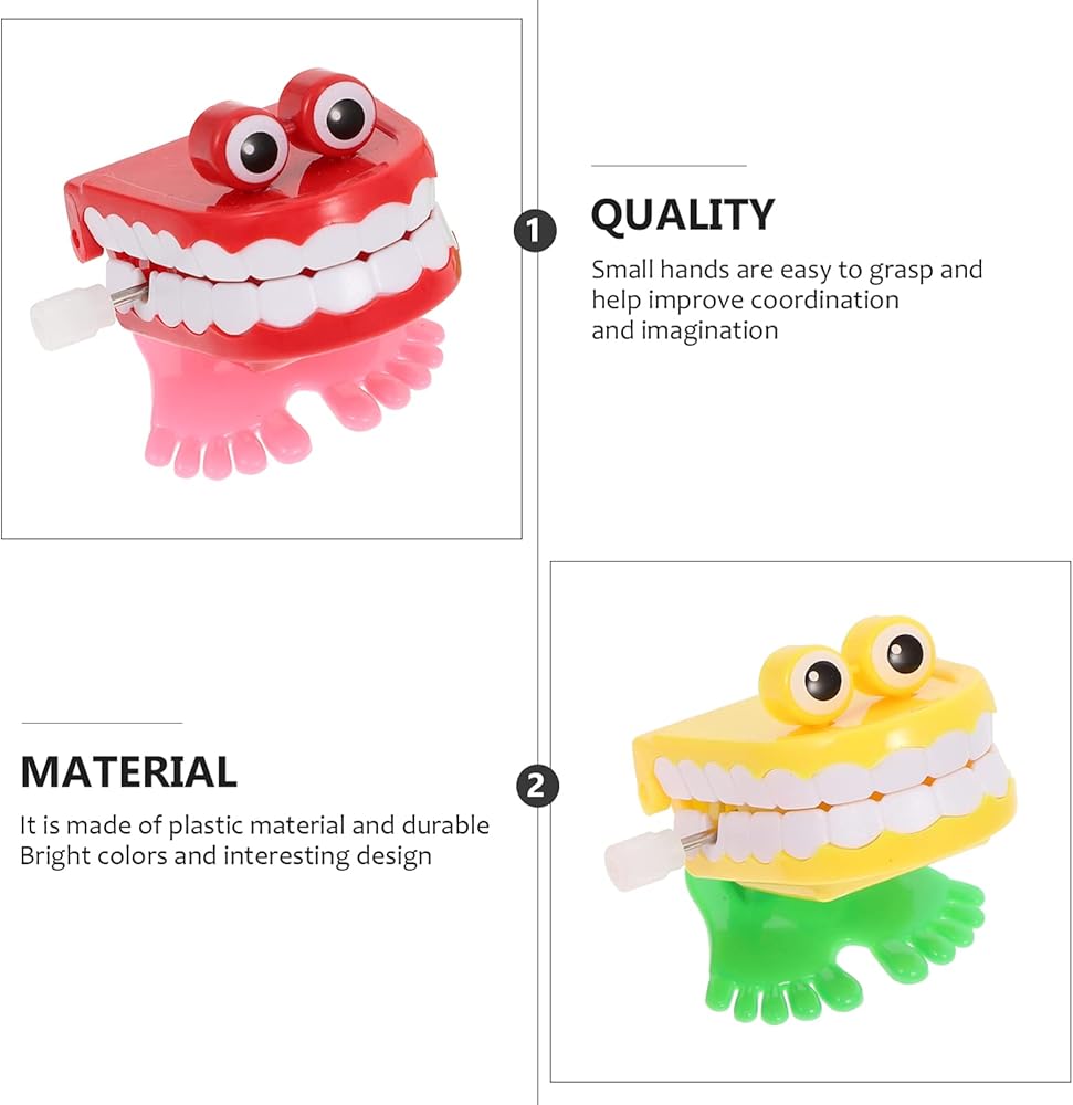 - أسنان ثرثرة - لعبة ثرثرة للأسنان: عندما يتم لف هذه الألعاب، ستتحرك الأسنان الثرثارة في خشخشة وقفز، مع قضم الأسنان بسرعة.