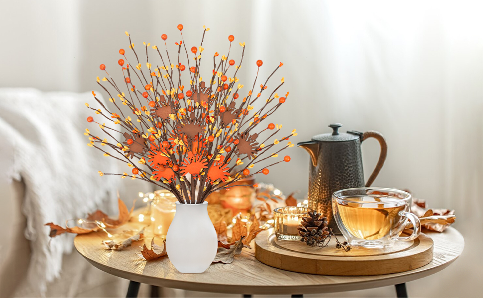 ديكورات عيد الشكر - تعتبر سيقان التوت الرومي اللطيفة خيارًا جيدًا لديكورات عيد الشكر للمنزل، وديكور طاولة عيد الشكر، ويمكن استخدامها أيضًا لحفلات عيد الشكر، وقطع مركزية لطاولة عيد الشكر وما إلى ذلك.