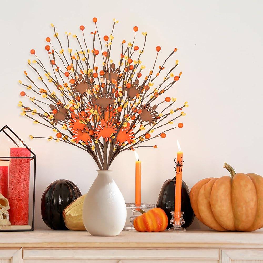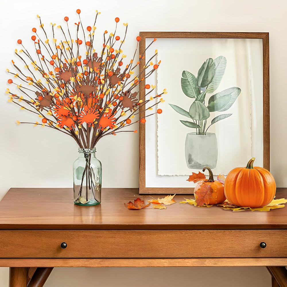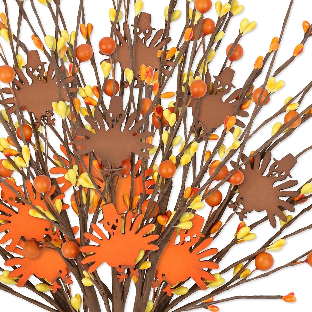 ديكورات عيد الشكر ديكور الطاولة سيقان التوت الاصطناعي، 6 عبوات عيد الشكر على شكل تركيا من اختيارات التوت البرتقالي لحشو المزهرية، لوازم هدايا الحفلات المركزية في المنزل وعيد الشكر