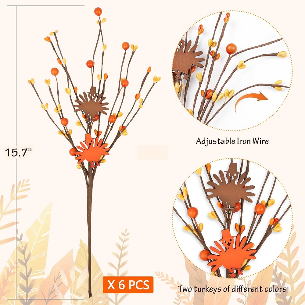 تتضمن العبوة - سوف تحصل على 6 أعواد توت ديك رومي صناعية لعيد الشكر. قم بتزيينها في المنزل لإبهار ضيوفك.