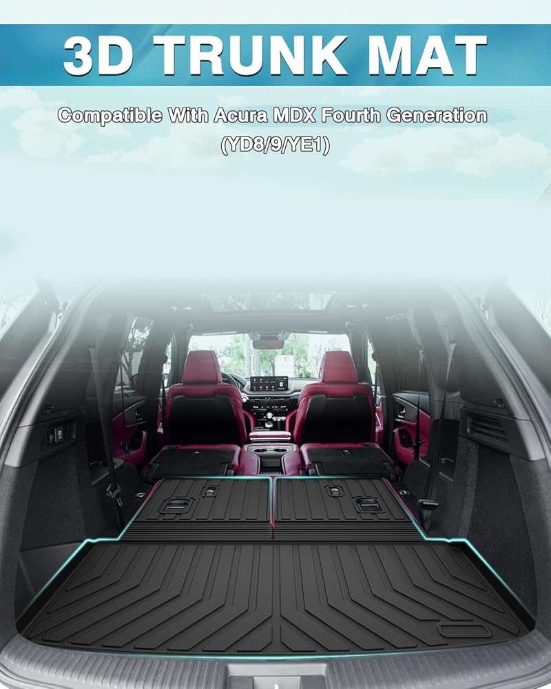 بطانة الحمولة لـ Acura MDX: حصيرة صندوق السيارة متوافقة مع 2022-2024 Acura MDX خلف مقاعد الصف الثاني.