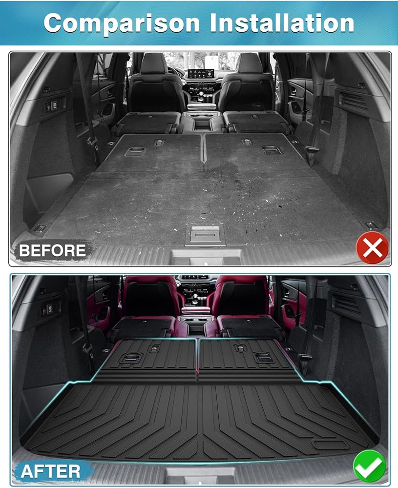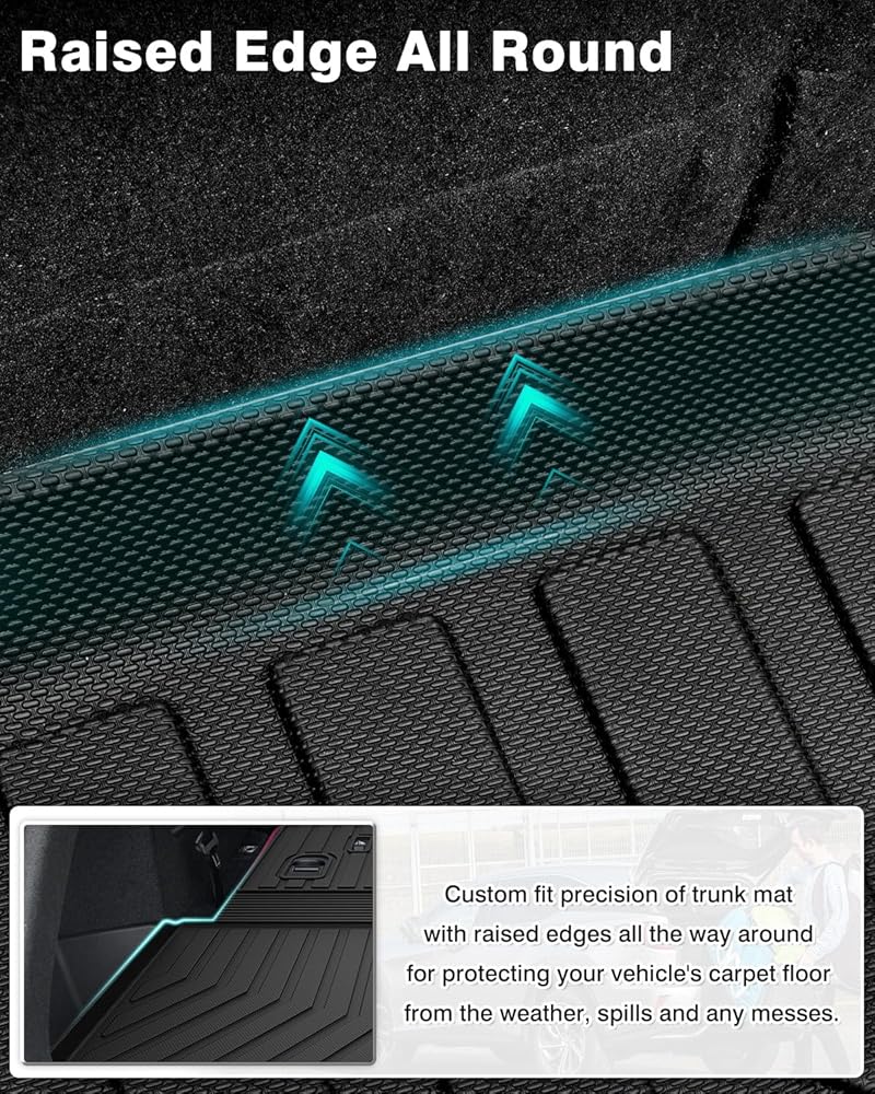 جوانب مانعة للانسكاب: تتميز سجادة صندوق السيارة الخاصة بـ Acura MDX بشفة مرتفعة على طول الطريق لمنع السوائل والحطام من الوصول إلى الأرضية الأصلية. تأكد من بقاء الفوضى على سجادة صندوق السيارة وبعيدًا عن سجادتك النظيفة الأصلية. حماية سيارتك من جميع أنواع الضرر.