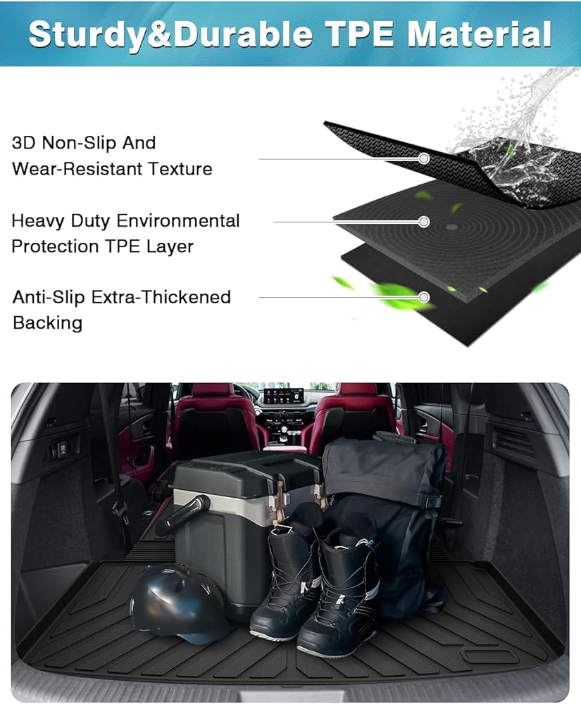 حماية لجميع المواسم ومواد TPE آمنة: حصيرة الشحن لـ Acura MDX مصنوعة من مواد TPE متينة ممتازة، ومقاومة للاهتراء، وغير قابلة للانزلاق وعديمة الرائحة. تحافظ مادة TPE عالية الشد والآمنة على مرونتها في جميع المواسم بينما لا تزال توفر شعورًا ممتازًا ومقاومة شديدة للتآكل.