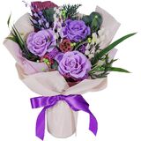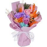 باقة زهور مصنوعة يدويًا - كل باقة مصنوعة يدويًا بدقة، مما يضمن ترتيب كل زهرة بعناية، على الرغم من حجمها الصغير، فإن هذه الباقة تتميز بتصميمها الأنيق والزهور المحفوظة، مما يجعلها اللمسة المثالية لأي مساحة.