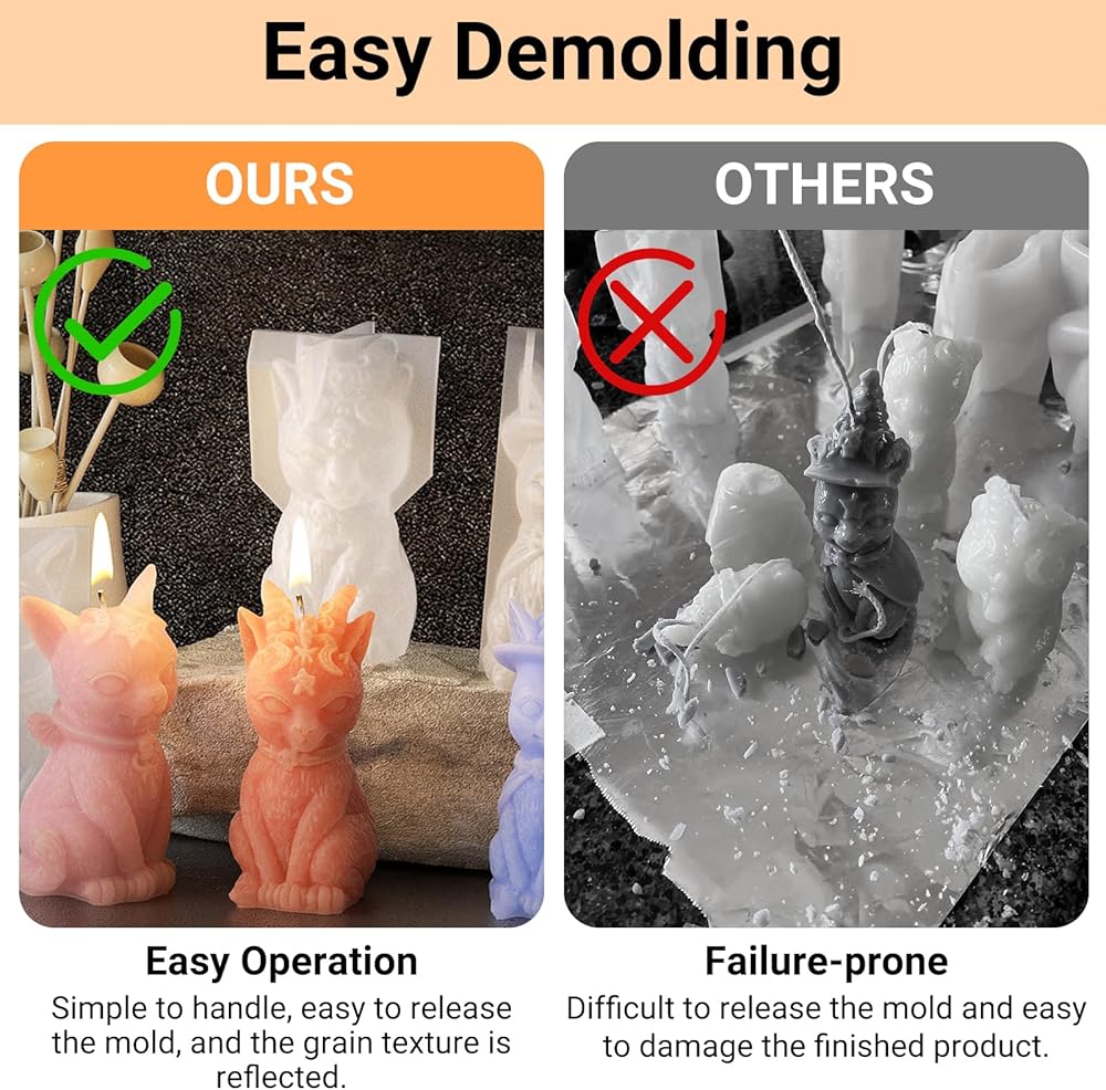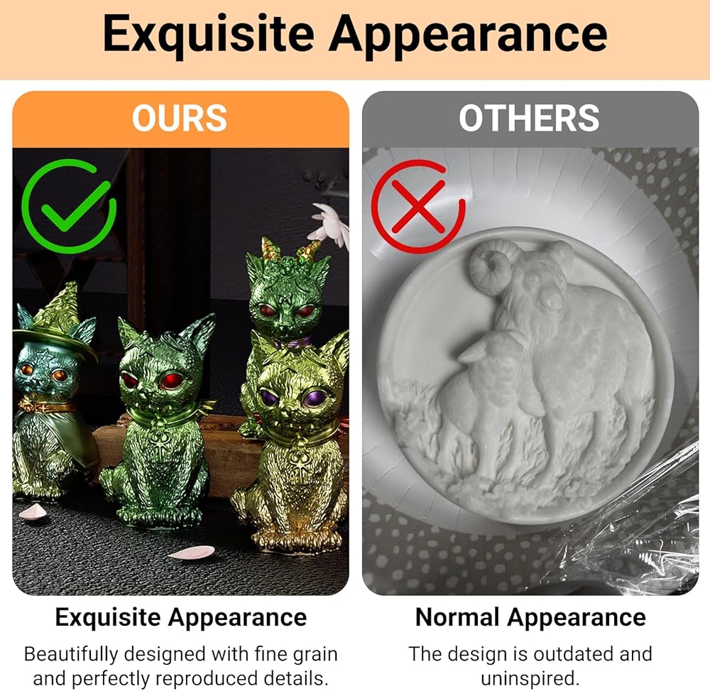 Easy to Use and Demoulding: Our demon cat molds are made of high-quality silicone resin with a non stick surface design. They have a smooth interior and are easy to demold, even after filling with resin, they can maintain their shape perfectly, and then effortlessly remove the finished product without struggling with sticky molds or damaged works. There is no residue, easy to clean, reusable, and will not deform.Silicone cat mold is compatible with materials such as epoxy resin, gypsum, cement, candles, soap, etc.