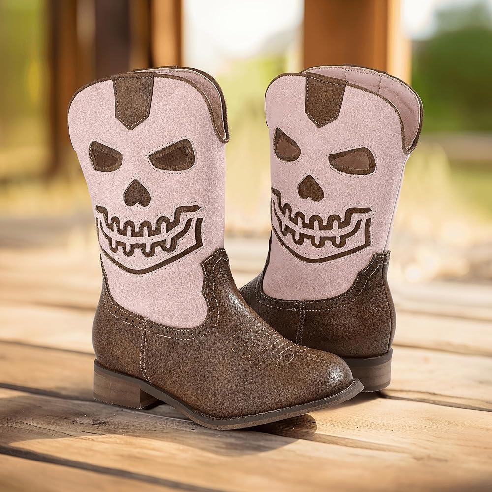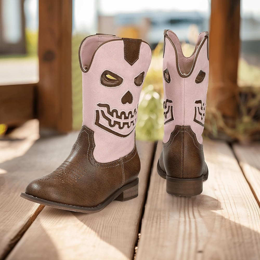 • Unique Girls Cowgirl Boots: Exquisite embroidery and cool skeleton elements completely combined. PANDANINJIA girls cowboy boots are cleverly designed to add a mysterious Halloween atmosphere, allowing children to take center stage during the holiday