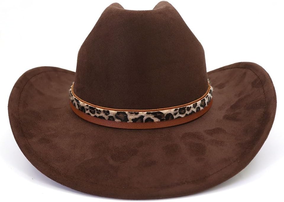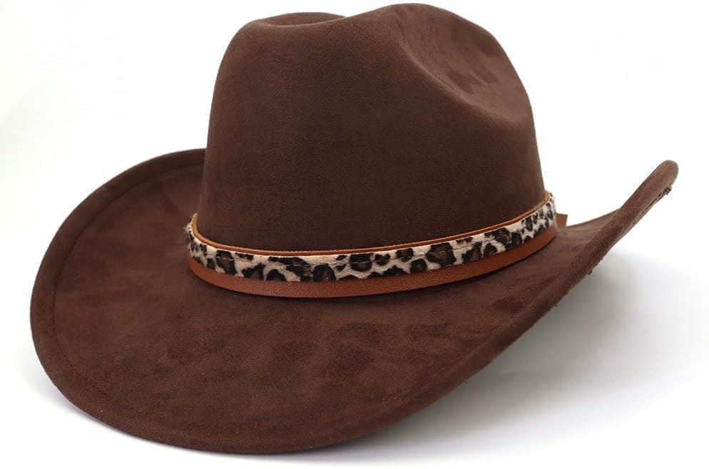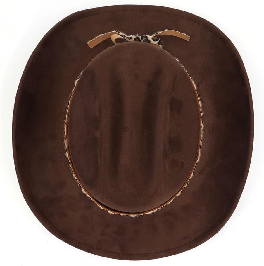 نسيج عالي الجودة: قبعة رعاة البقر الكلاسيكية النسائية مصنوعة من نسيج بوليستر عالي الجودة، مادة سويدي، ناعمة ومريحة الملمس، مناسبة للارتداء في جميع الأحوال الجوية، حتى لو تم ارتداؤها لفترة طويلة لن تتشوه.