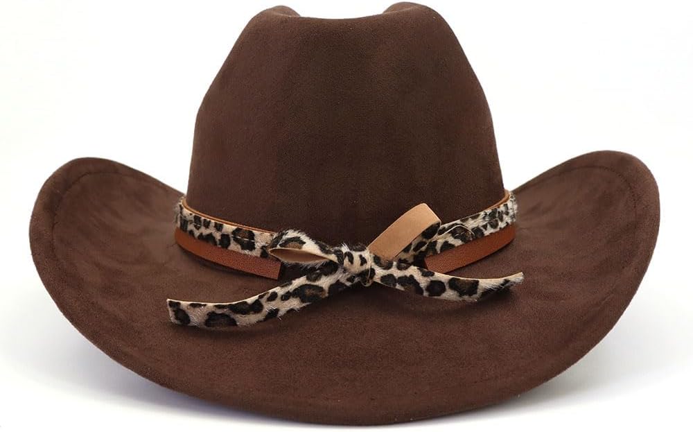 قبعة بطبعة جلد الفهد: قبعة رعاة البقر النسائية مجهزة بقبعة بطباعة جلد الفهد، مادة جلدية كلاسيكية عتيقة من نسيج الفهد المخملي، مع إبزيم على شكل فيونكة، تبدو أنيقة ومثيرة، مفعمة بالحيوية والمرح، ارتديها بسهولة للتحكم في أي نمط تريده !