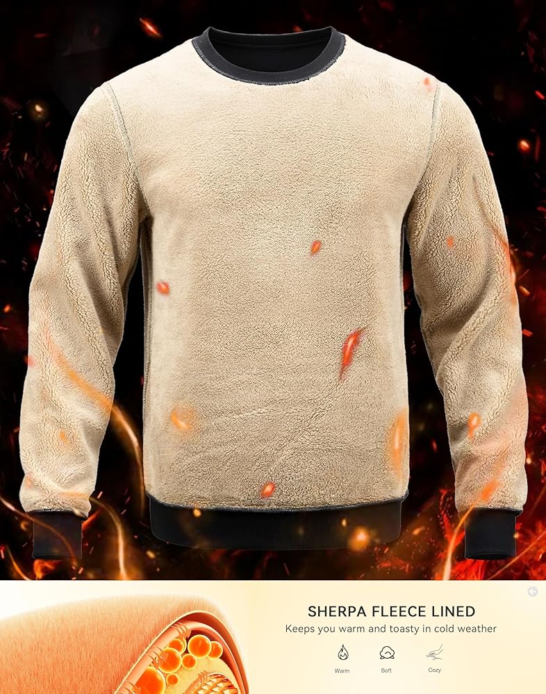 • صوف الشيربا: هذا السويت شيرت الرجالي مصنوع من صوف الشيربا الناعم والمريح. صوف الشيربا من الداخل والأكمام سميكة وناعمة ودافئة ومسامية ومريحة للغاية