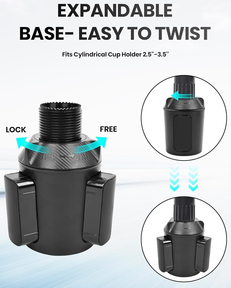 هدية مدروسة للسائق/المسافرين: يعد موسع حامل الأكواب هذا هدية عملية وأنيقة تعزز أي تجربة قيادة. يمكن تعديله بسهولة ليناسب معظم حاملات الأكواب في المركبات ويتميز بمقابض مطاطية لتثبيت المشروبات في مكانها بشكل آمن. بفضل التركيب السريع والخالي من الأدوات، فهو ترقية مناسبة لأي سيارة، مما يجعله هدية مثالية للأصدقاء أو العائلة أو الزملاء الذين يحبون السفر براحة.