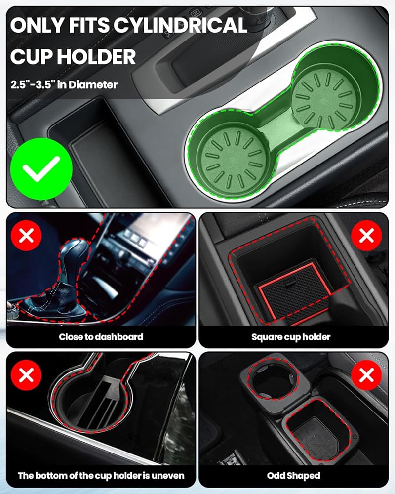 قابل للتعديل مناسب لمعظم السيارات: يتميز موسع حامل أكواب السيارة بقاعدة قابلة للتعديل تتمدد من 2.5 سم إلى 3.5 سم، مما يضمن ملاءمة مثالية لمختلف المركبات ذات حاملات أكواب أسطوانية. لقد تم تصميمه ليناسب مجموعة واسعة من أحجام الأكواب، مما يوفر حلاً آمنًا ومتعدد الاستخدامات لحاملات المشروبات في سيارتك