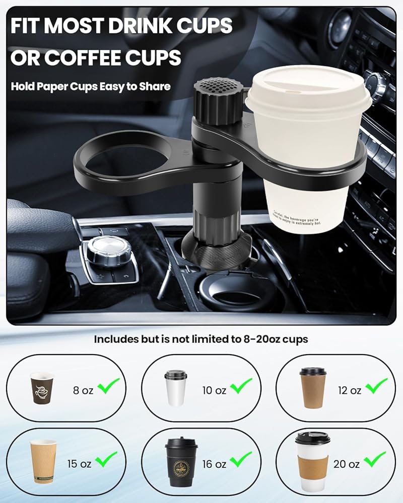 تصميم متين للغاية: مزود بمقابض مطاطية، يعمل موسع حامل الأكواب هذا على تأمين الزجاجات والأكواب بإحكام، مما يمنع أي خشخشة أو حركة أثناء القيادة. استمتع برحلة أكثر هدوءًا واستقرارًا مع وضع مشروباتك في مكانها بشكل آمن