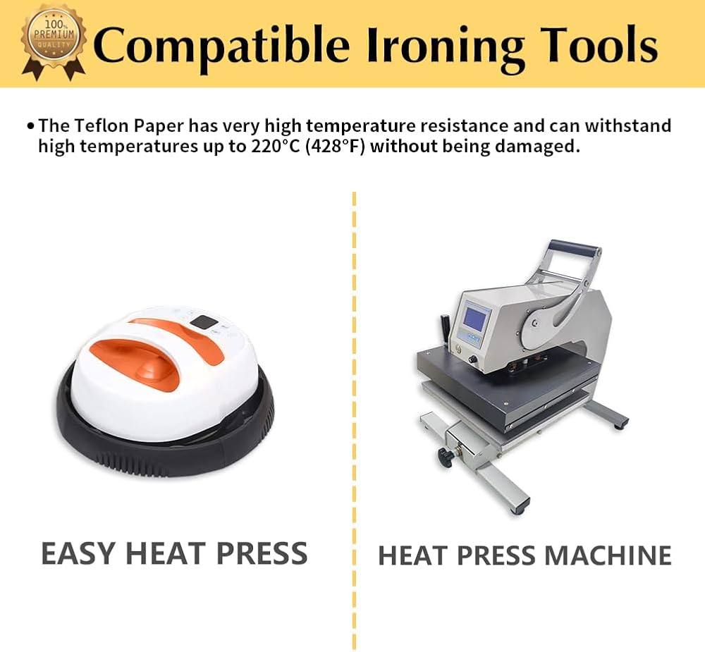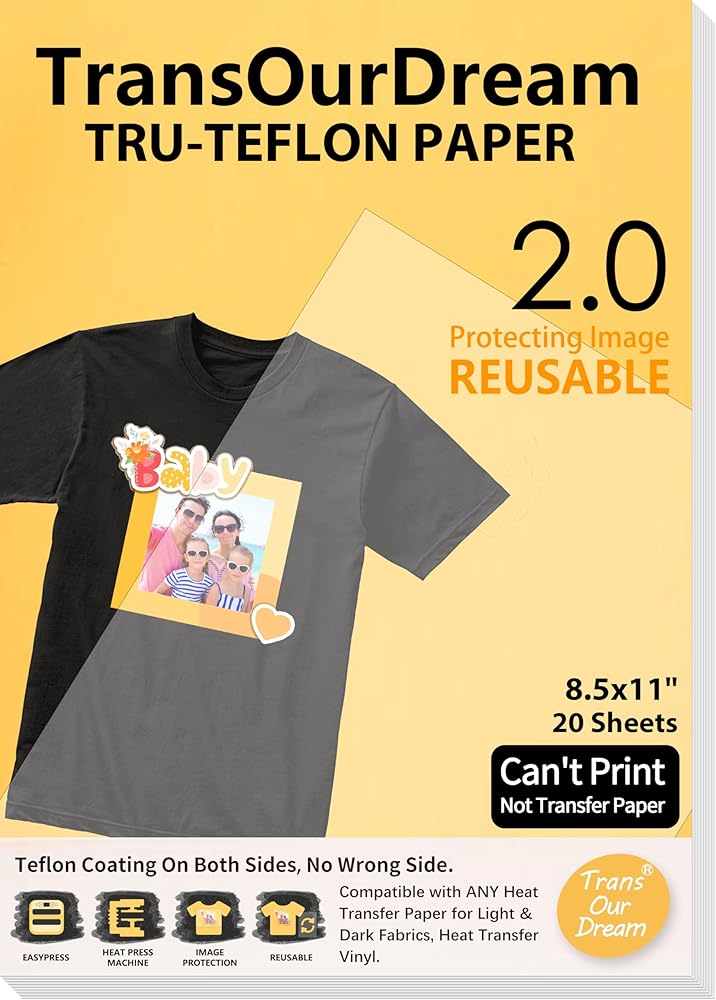 • 💕أفضل رفيق لورق التسامي: هذا ليس ورق التسامي. يتم استخدامه لحماية الصورة أثناء نقل الصورة. ينطبق على جميع العلامات التجارية لورق التسامي، وورق النقل الحراري، وورق النقل المتوهج في الظلام، وورق النقل اللامع وجميع سلاسل الفينيل الناقل للحرارة HTV. حزمة من 20 ورقة مقاس 8.5×11 ورق تيفلون.