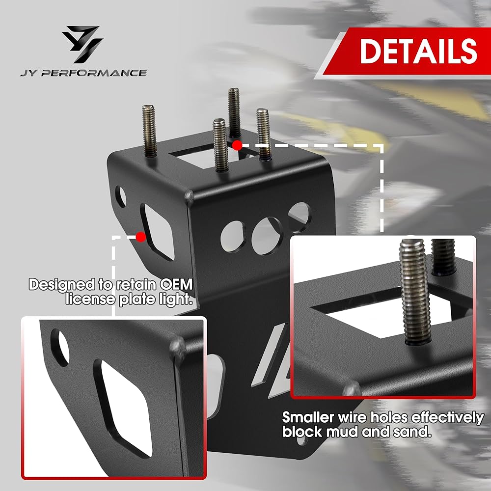 • PACKAGE: License plate bracket mount comes with 4 x nuts, 4 x screws, 4 x washers, 3 small rubber plugs, 1 x big rubber plugs.