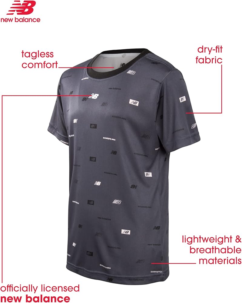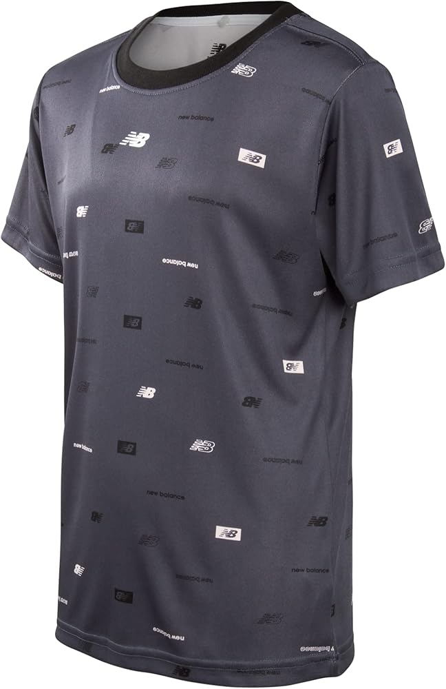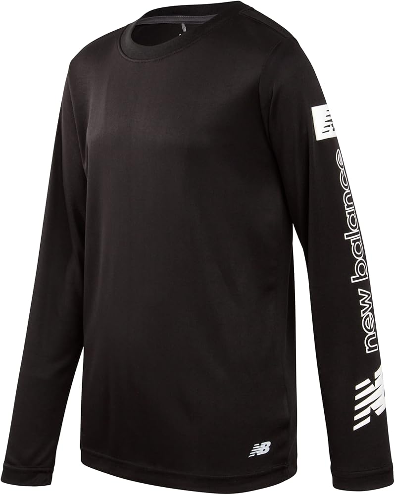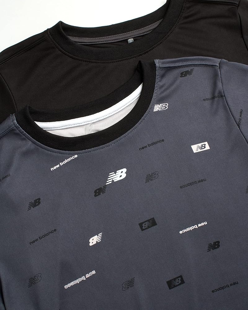 تي شيرت رياضي للأولاد من New Balance - قطعتان من القمصان الرياضية ذات الأداء النشط بأكمام قصيرة وطويلة (8-20)، مقاس 8، أسود رصاصي