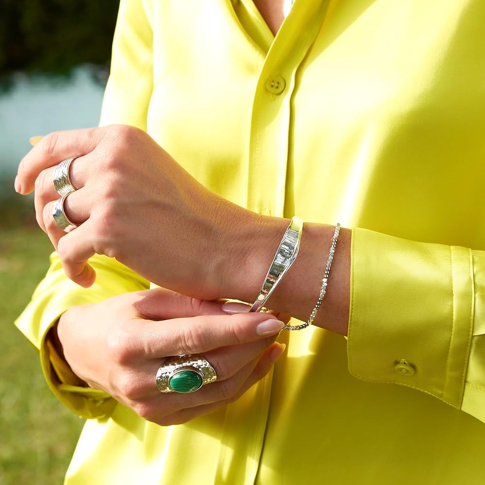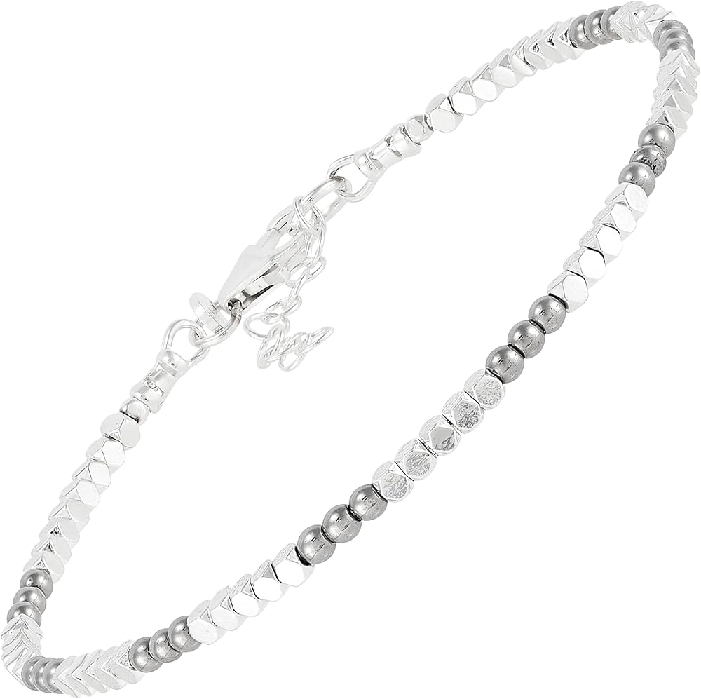 بفضل تصميمه الساحر الذي يتميز بمجموعة من خرز الهيماتيت مقاس 2.5 مم و3 مم، يمنح هذا السوار مظهرًا غنيًا وبراقًا. سواء كان حدثًا رسميًا أو مظهرًا يوميًا، يضمن هذا السوار حصولك على الإطراء. قم بإقرانها مع القلادة الأصلية بالكامل. لإطالة جمال أحجار الهيماتيت المطلية بالفضة، تجنب الحرارة والرطوبة. تأتي القطعة مع ختم الجودة من الفضة الإسترليني ".925" كرمز لجودة المنتج المضمونة.