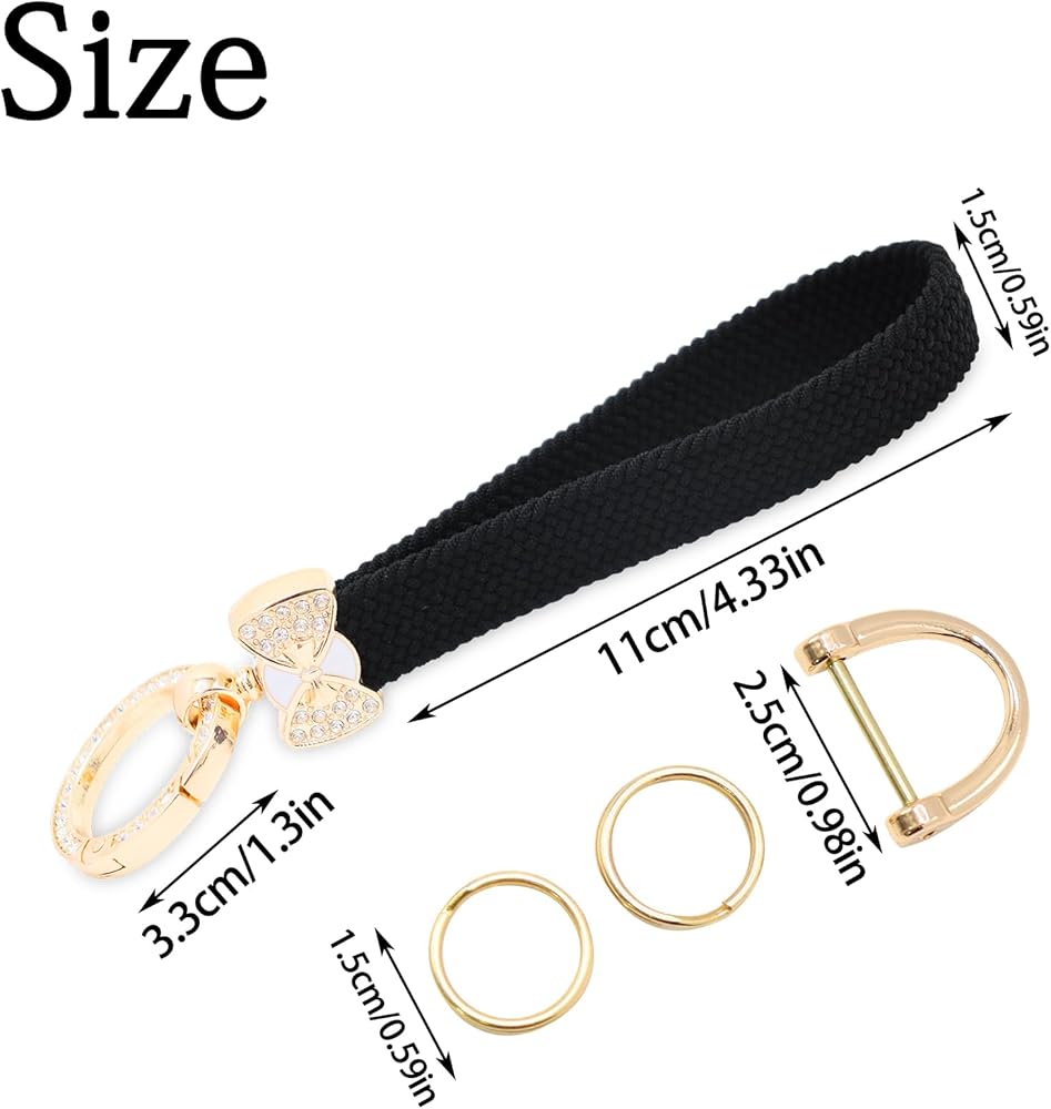 مقاس معقول: جزء حبل التعليق من سلسلة مفاتيح المعصم هذه يبلغ طوله 12 سم/4.7 بوصة وعرضه 2.2 سم/0.86 بوصة؛ وهو مناسب للأيدي من جميع الأحجام للارتداء؛ نظرًا للعرض، فإن ارتدائه لفترة طويلة لن يشعر بعدم الراحة؛ نحن أيضًا نطابق حلقتين معدنيتين رئيسيتين وحلقة مفاتيح للسيارة لتلبية احتياجاتك المتنوعة