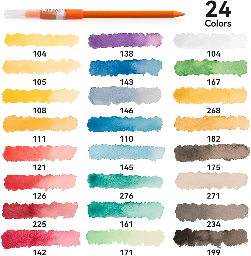 • 24 لونًا نابضًا بالحياة - تتضمن مجموعتنا 24 لونًا غنيًا ونابضًا بالحياة، تم اختيارها بعناية لتلبية احتياجات الفنانين المبتدئين والمحترفين. من الألوان الأساسية الجريئة إلى الألوان الأرضية الدقيقة، سيكون لديك كل ما تحتاجه لإضفاء الحيوية على رؤيتك.