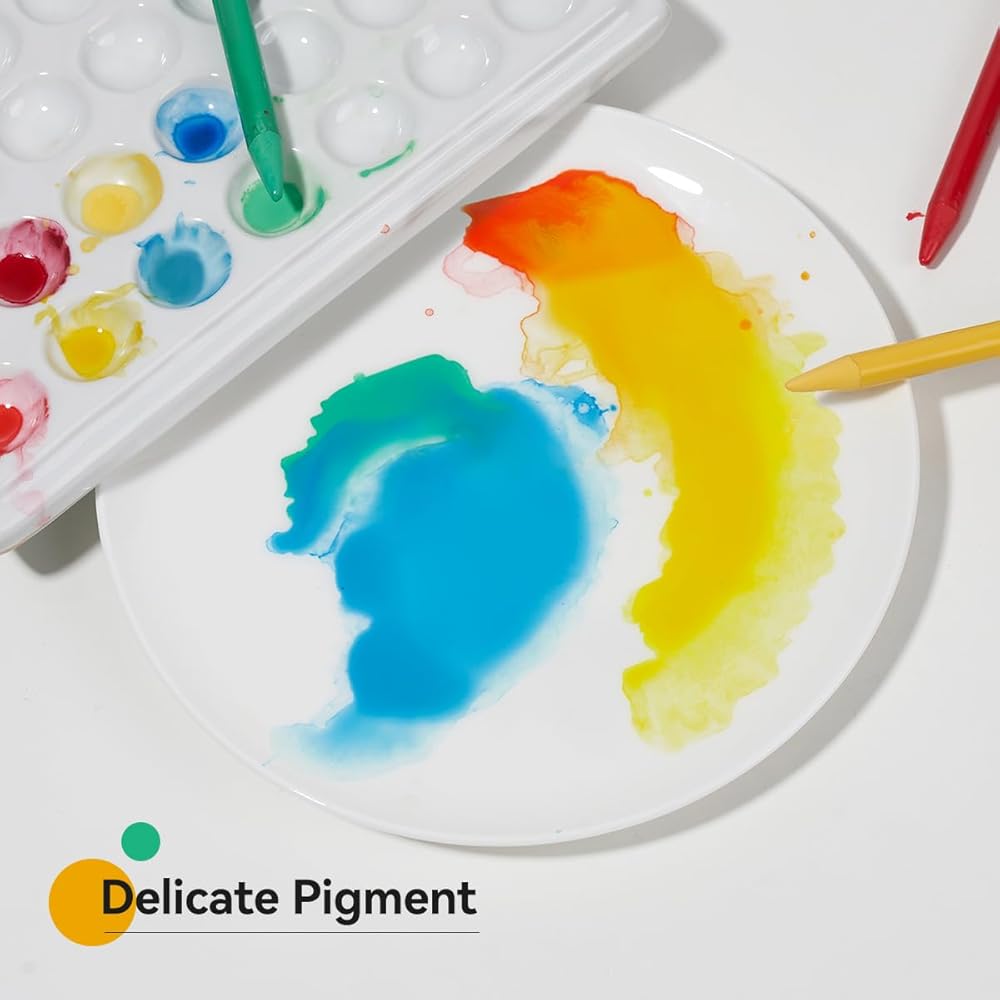 • تصميم مبتكر - تجمع دهانات الألوان المائية لدينا بين أفضل ما في العالمين، مما يوفر راحة الألوان المائية مع الألوان النابضة بالحياة وملمس الباستيل الزيتي. هذه الصيغة الفريدة تجعل إنشاء أعمال فنية مذهلة أثناء التنقل أسهل من أي وقت مضى.