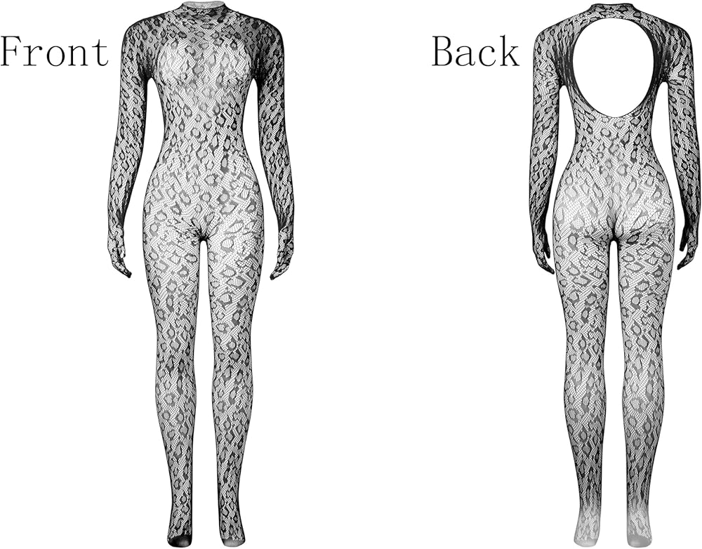 ملابس داخلية نسائية من شبكة صيد السمك، ملابس داخلية شبكية مثيرة مع لباس ضيق من قطعة واحدة بنمط الفهد