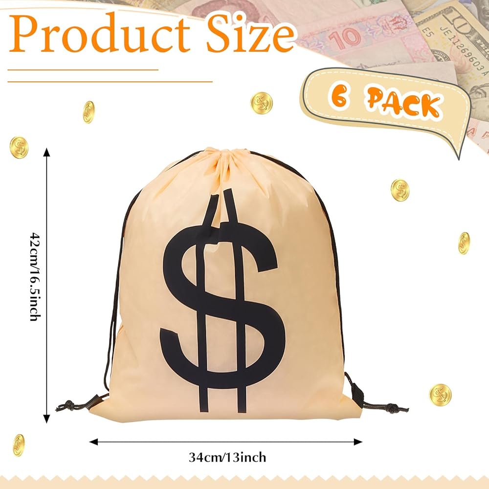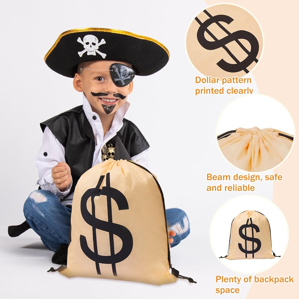 The drawstring pouch with dollar sign fits well for a variety of occasions, including birthday parties, pirate theme parties, money theme parties, etc., giving you a good visual enjoyment.