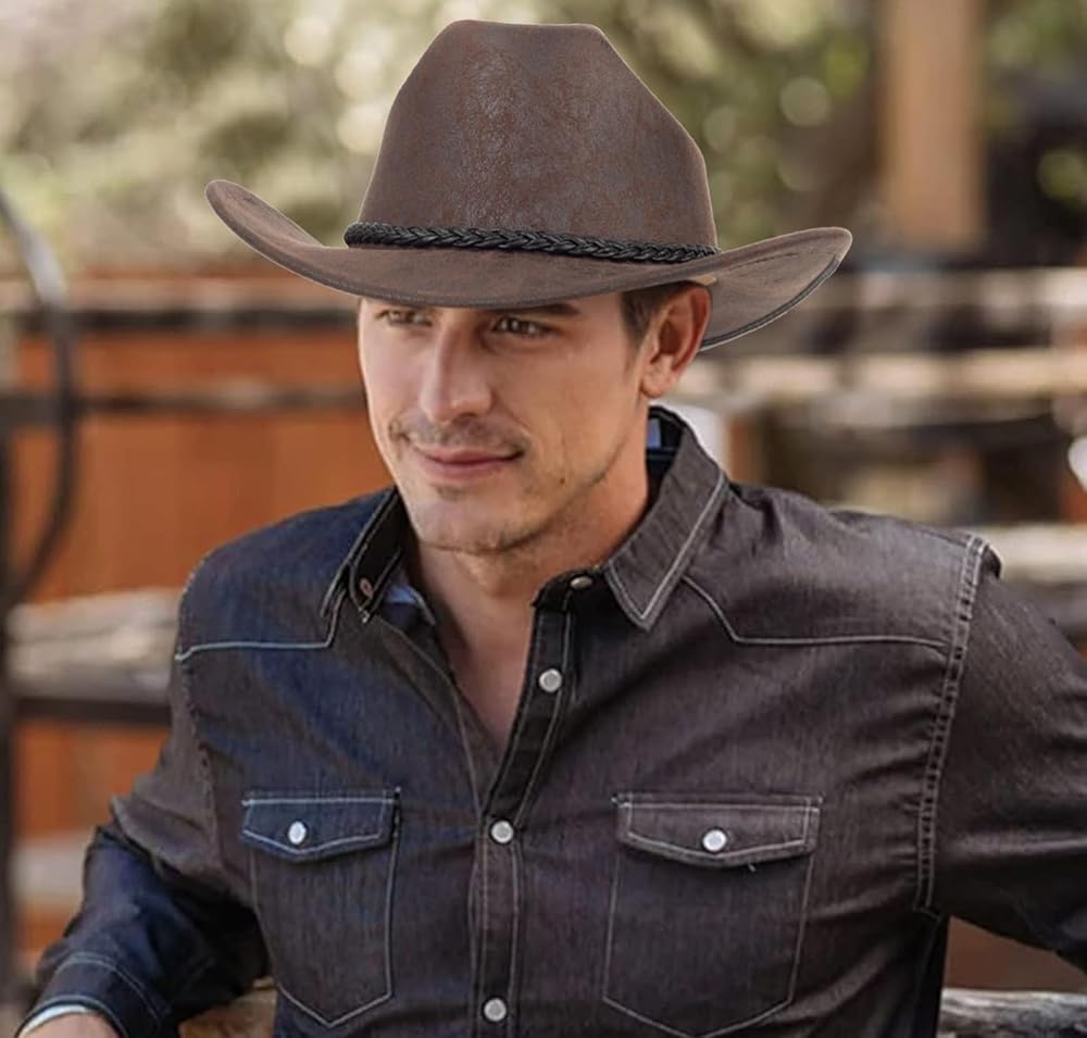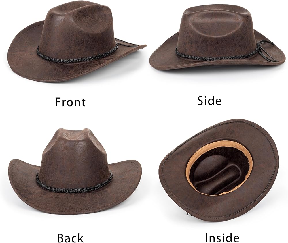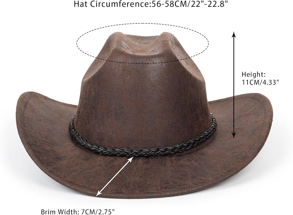 Fabric Type:Made from PU leather ,Our Classic Western Cowboy Hat is crafted for durability and comfort, Comfortable to wear, long time wear will not feel stuffy